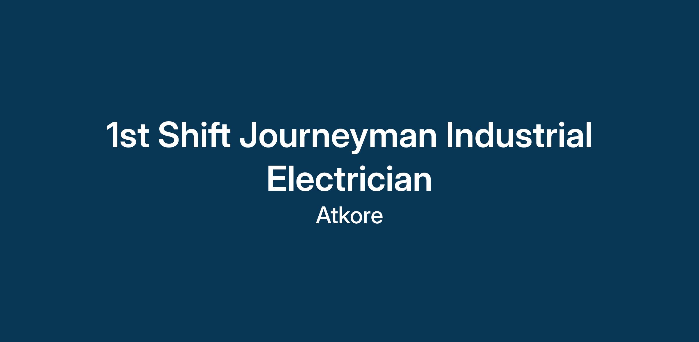 1st Shift Journeyman Industrial Electrician (Mon-Fri 7am – 3pm)