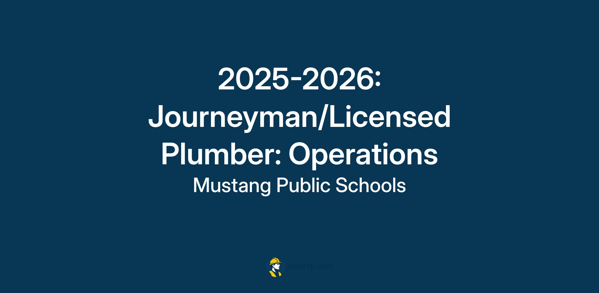 2025-2026: Journeyman/Licensed Plumber: Operations