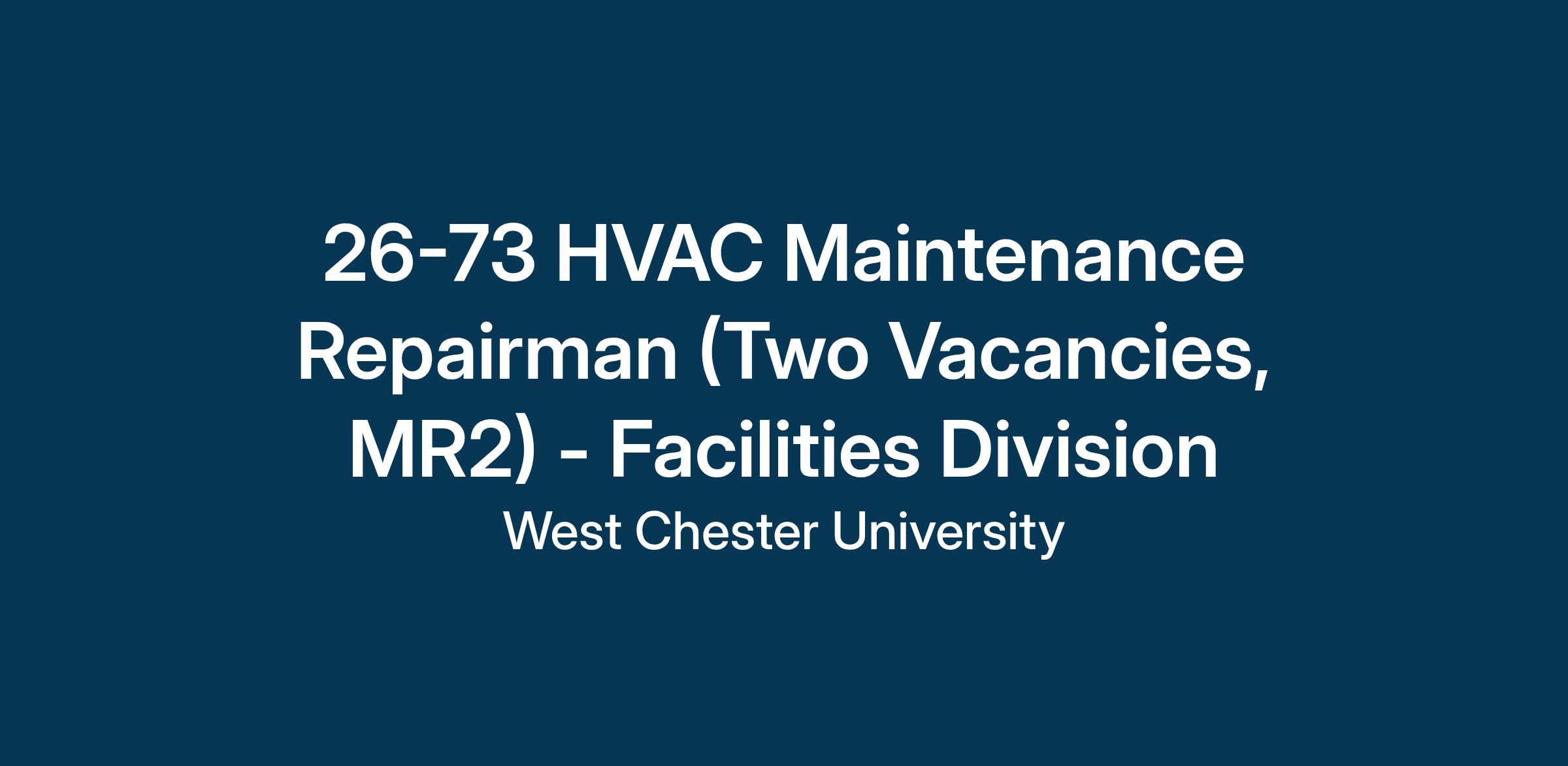 Join a vibrant campus community whose excellence is reflected in its diversity and student success. West Chester University of Pennsylvania’s HVAC Shop invites applicants for the two vacant positions of Maintenance Repairman.