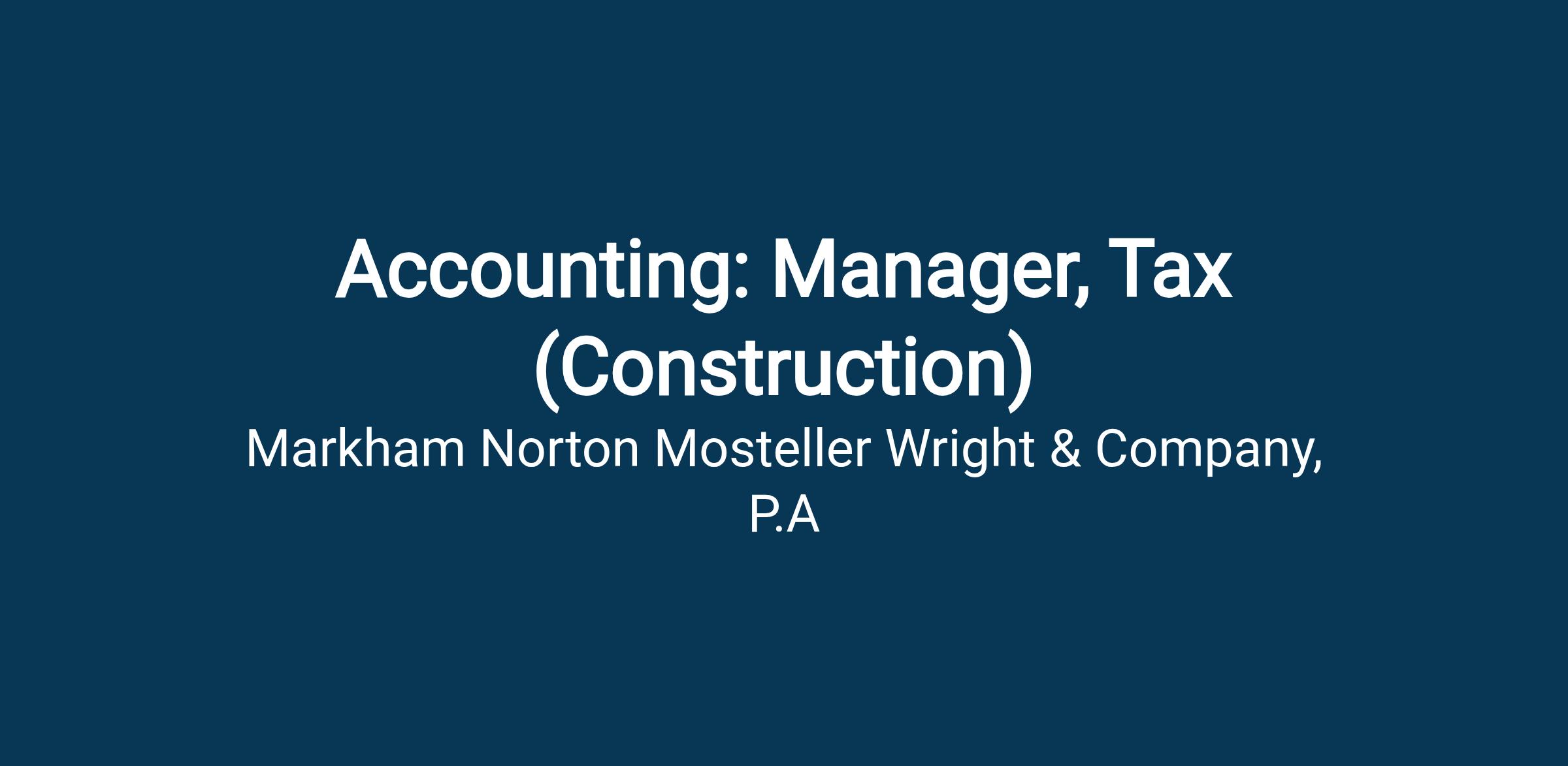 Accounting: Manager, Tax (Construction)