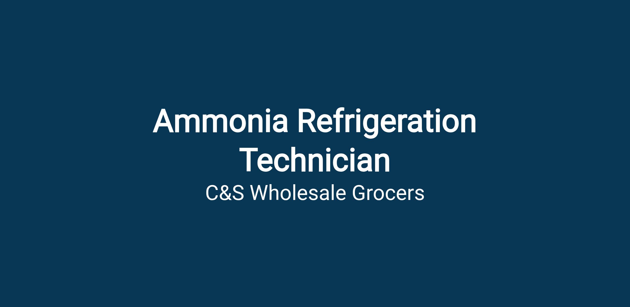 - Specialized Knowledge Needed For Performance of Job: Ammonia Refrigeration and CFC Certification