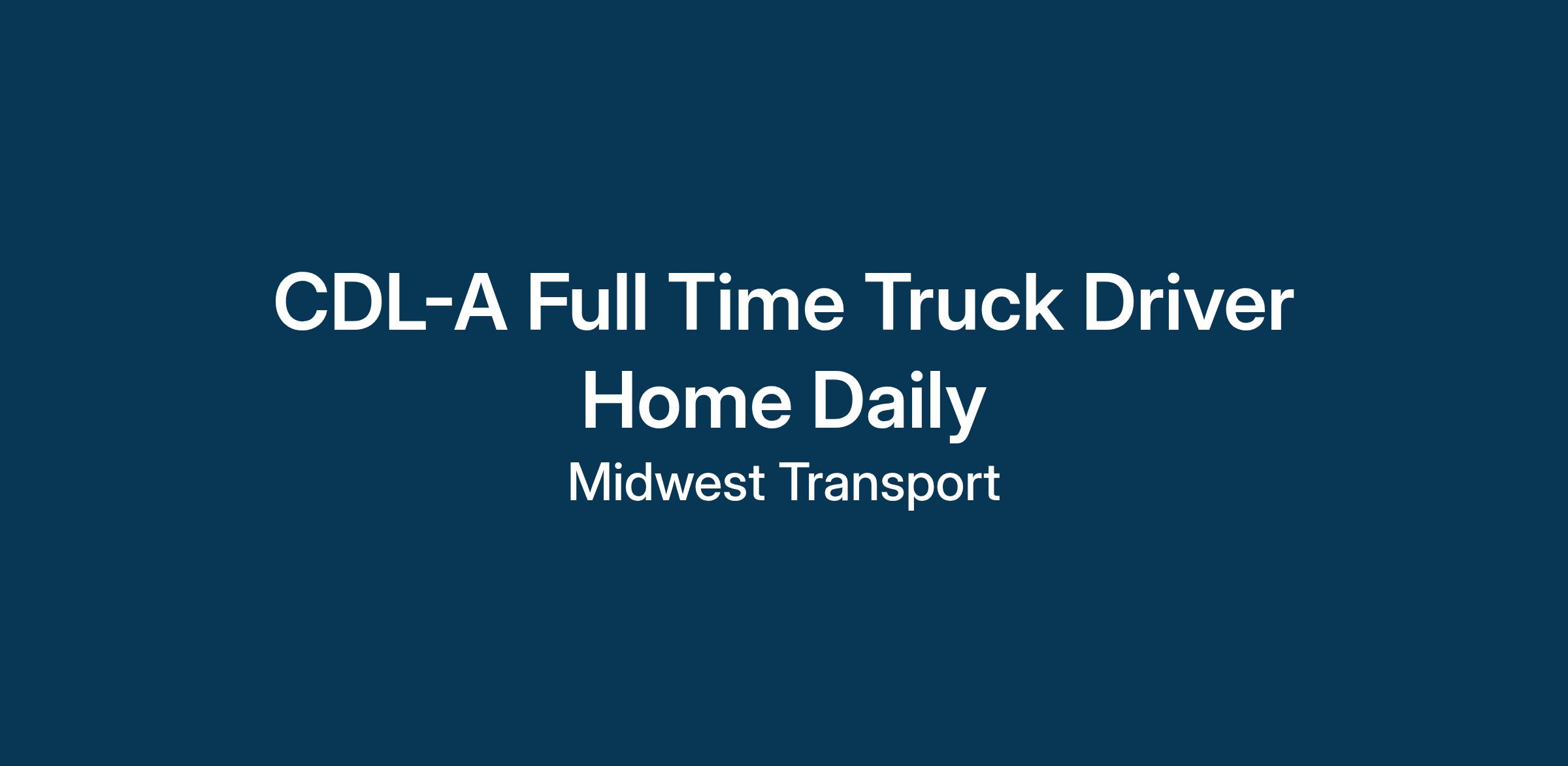 Truck Driver Home Daily Class A – Full Time Interested Candidates can reach out to Midwest Transport, Inc Directly Please Contact Recruiting @ 618-544-3399 / [email protected].