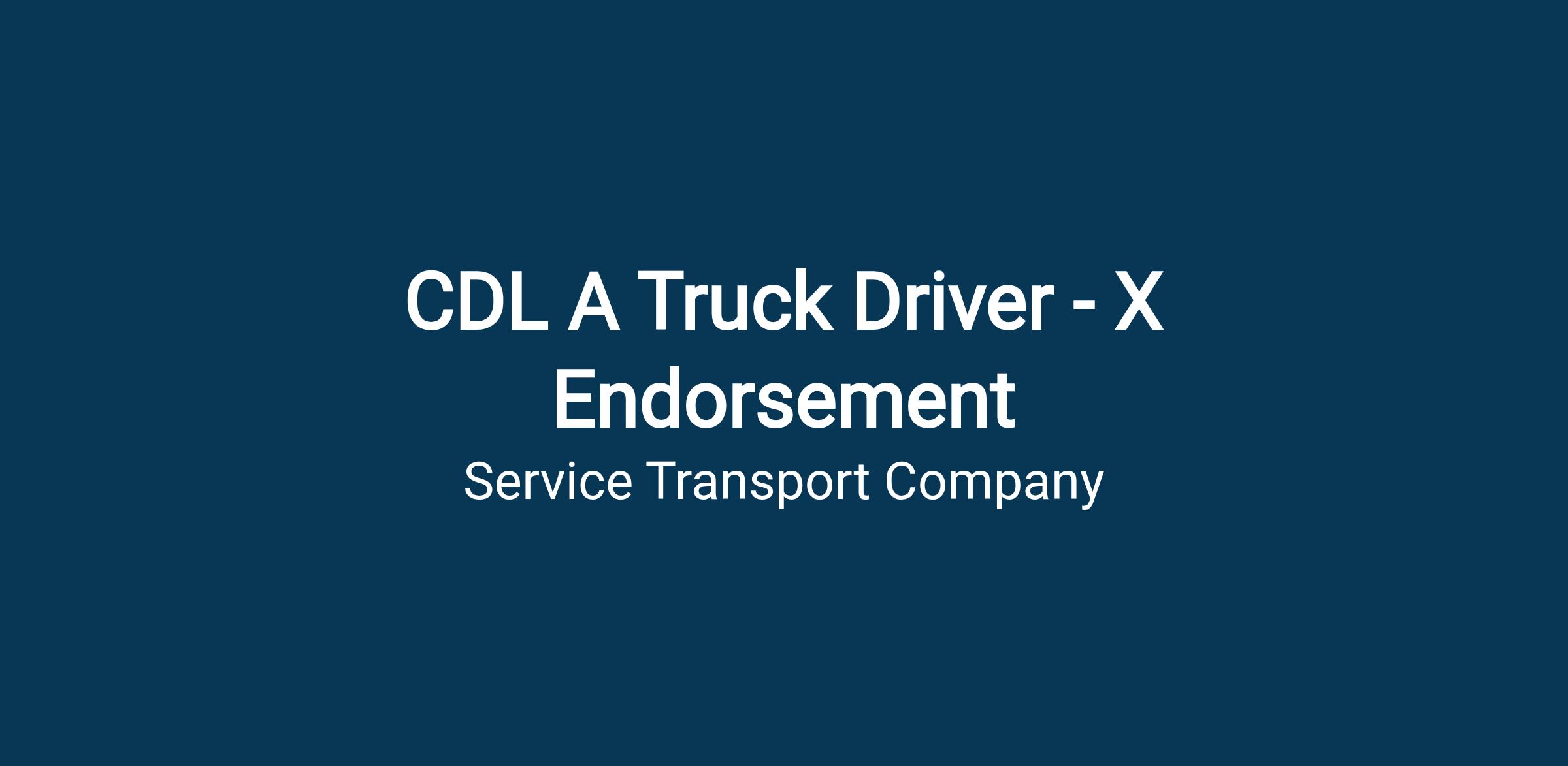 - Class A CDL with X Endorsement - —Assistance $ for qualified applicants