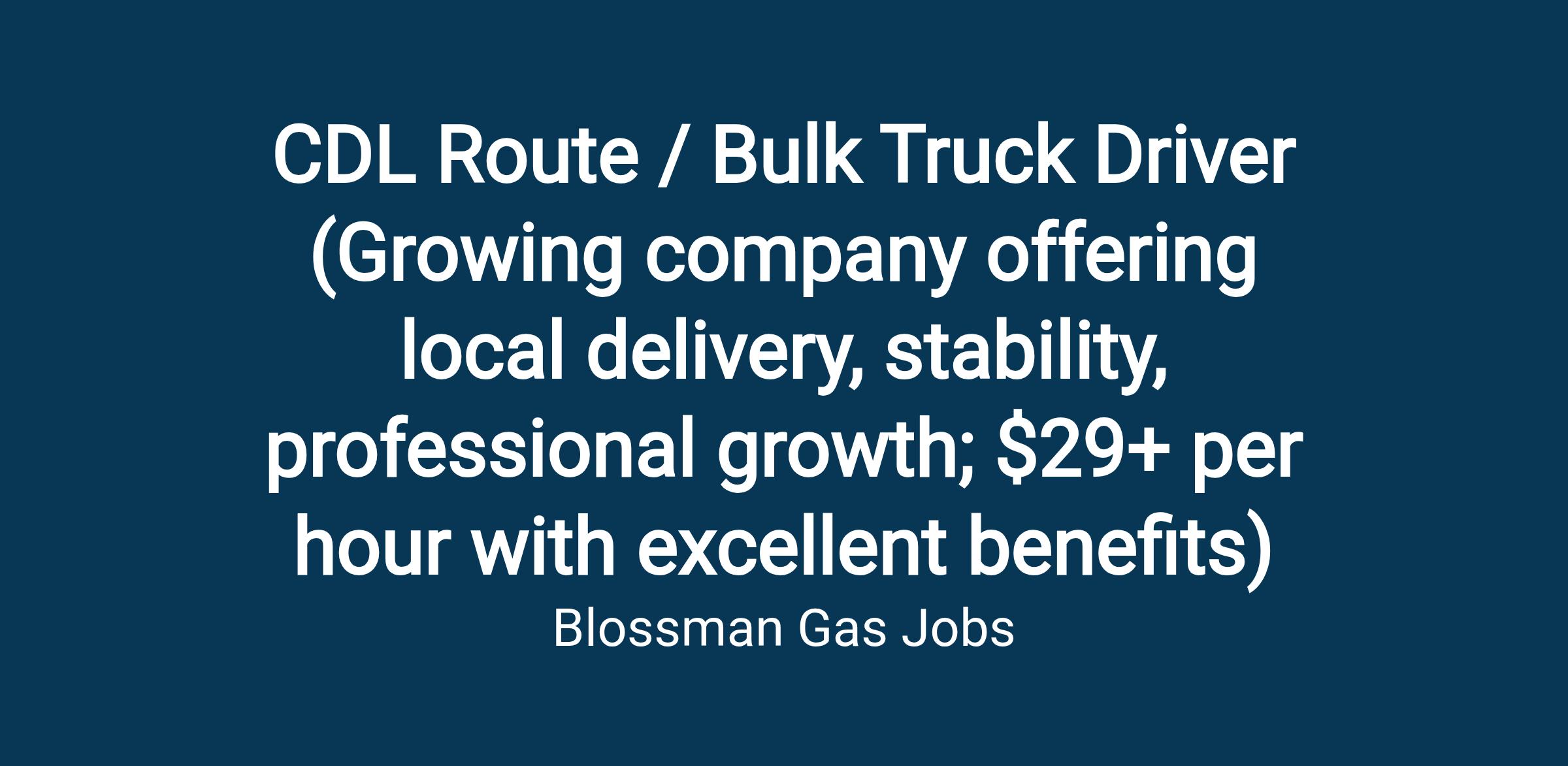 The position requires customer service skills, occasional on-call duty, and being a contributing member of team work environment while championing Blossman's core line of products and services. Driving and delivering in all-weather conditions is routine. A strong commitment to safety, consistent with company policy, is a must. Regular bending, lifting and pulling are associated with this job. This position will require a valid CDL with hazmat and tanker endorsements within 90 days of hire so a clean driving record is needed. (We can help you with this process!)