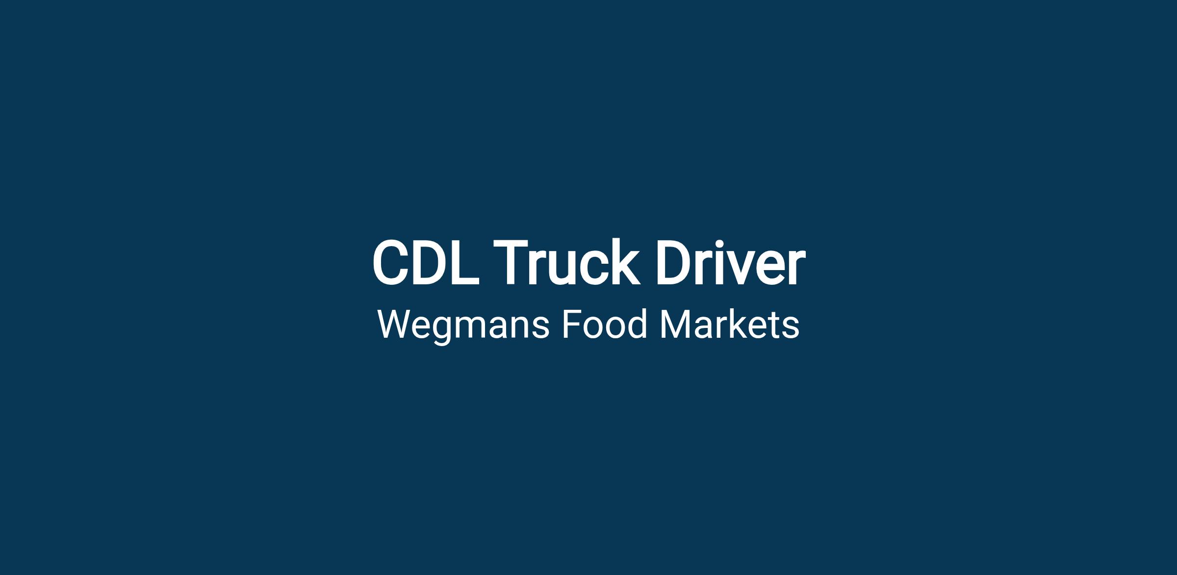 Note: Driver employment at Wegmans is contingent upon completion and our evaluation of a drug test, DOT drug test, DOT physical exam, criminal background check, employment verification, driver's abstract (PSP review) and a driving skills evaluation
