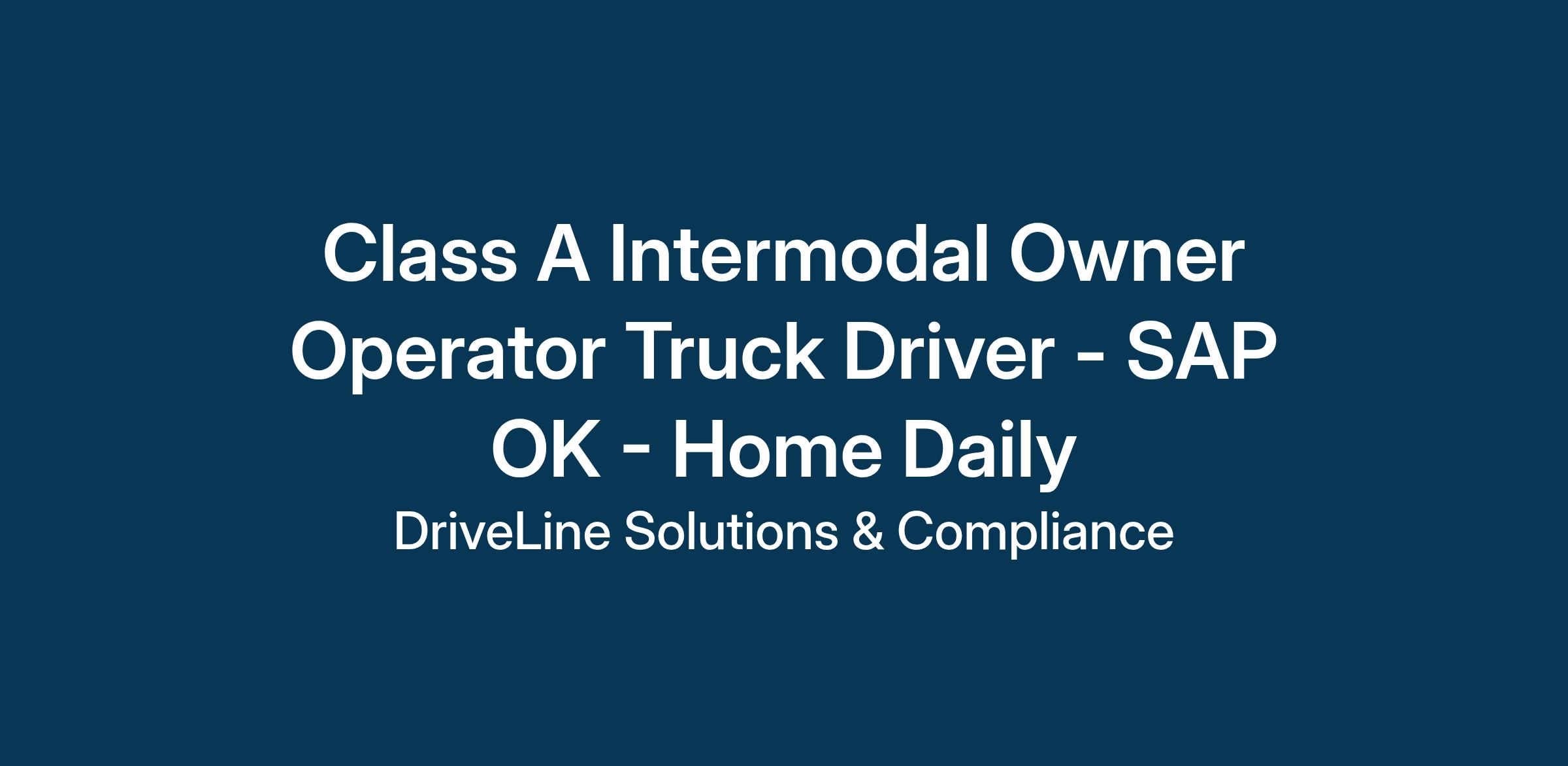 Class A Intermodal Owner Operator Truck Driver - SAP OK - Home Daily