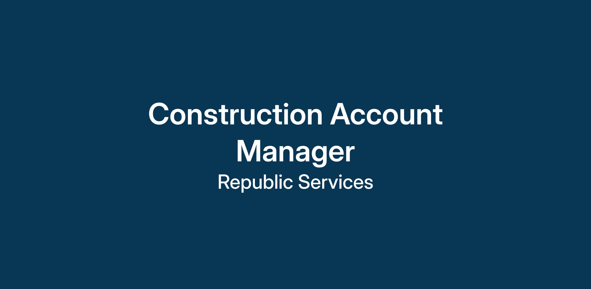 POSITION SUMMARY: Within a designated market, the Construction Account Manager is responsible for identifying leads and proactively prospecting and selling temporary waste removal to customers primarily in the construction industry. The Construction Account Manager is also responsible for building and growing long-term relationships and increasing revenue to meet and exceed the monthly targeted profitable growth objectives in support of the Company’s overall goals. The Construction Account Manager meets regularly with prospective and existing clients in his or her assigned market area to deliver sales presentations, follow up with key decision makers and sell all services, as appropriate.
