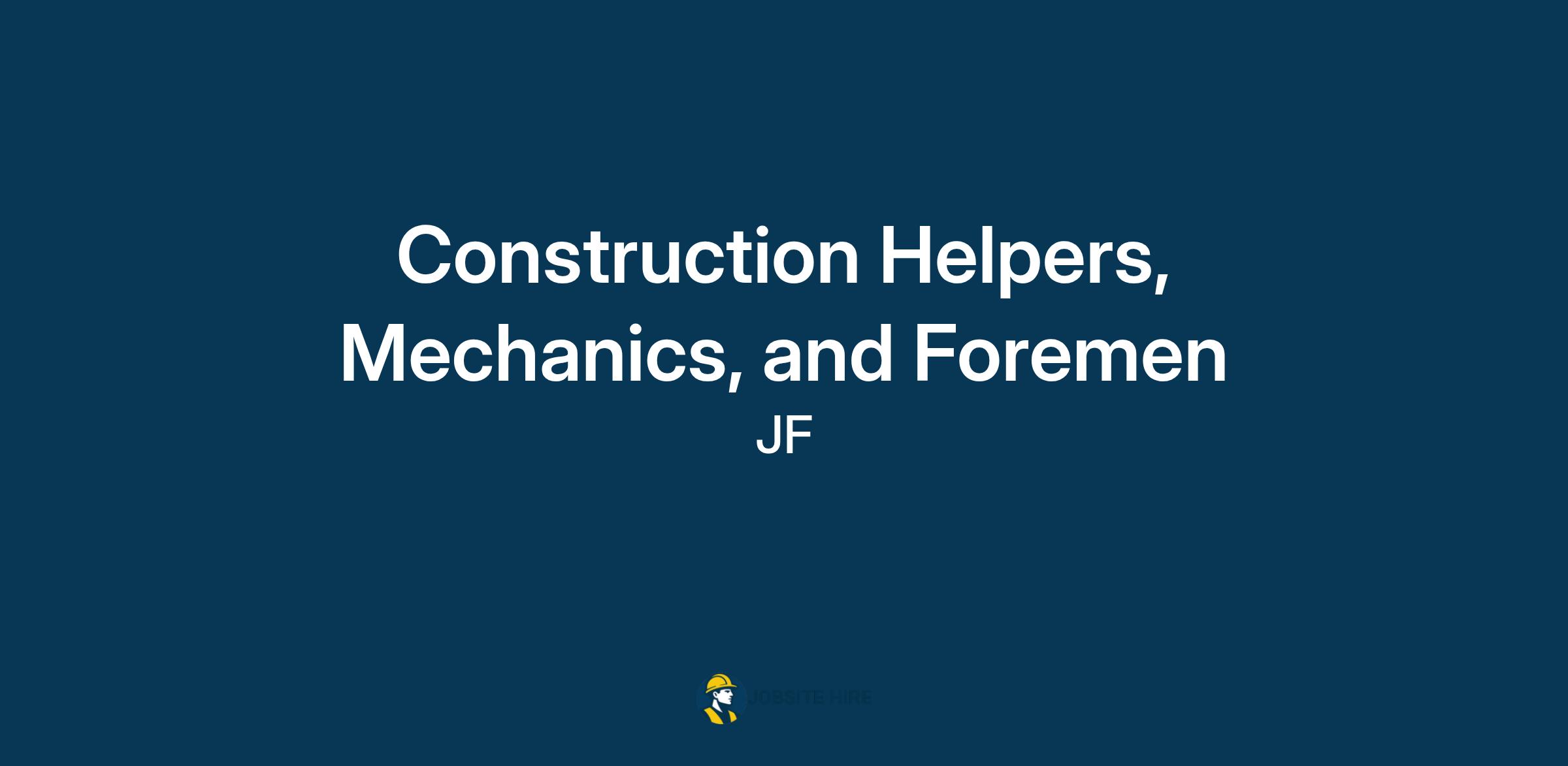 The Construction Helpers/Mechanics/Foreman perform many tasks that require physical labor on construction sites. The Mechanic mainly assists the construction craft worker or electrician. They may carry tools and materials or help set up equipment. They are able to perform a wide range of tasks varying in complexity from very easy to extremely difficult and potentially hazardous.