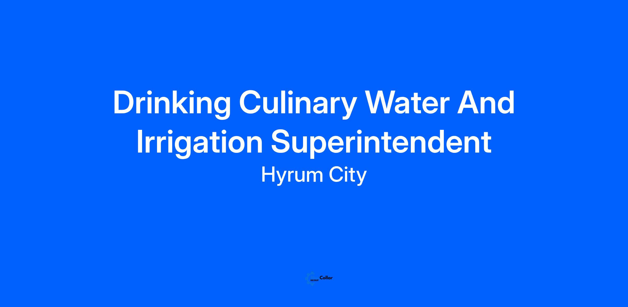 Hyrum City is accepting resumes for a Water & Irrigation Superintendent for its municipally owned and operated Culinary Water and Pressurized Irrigation Department. The Water & Irrigation Superintendent is responsible for the day-to-day management and operations of the utility.