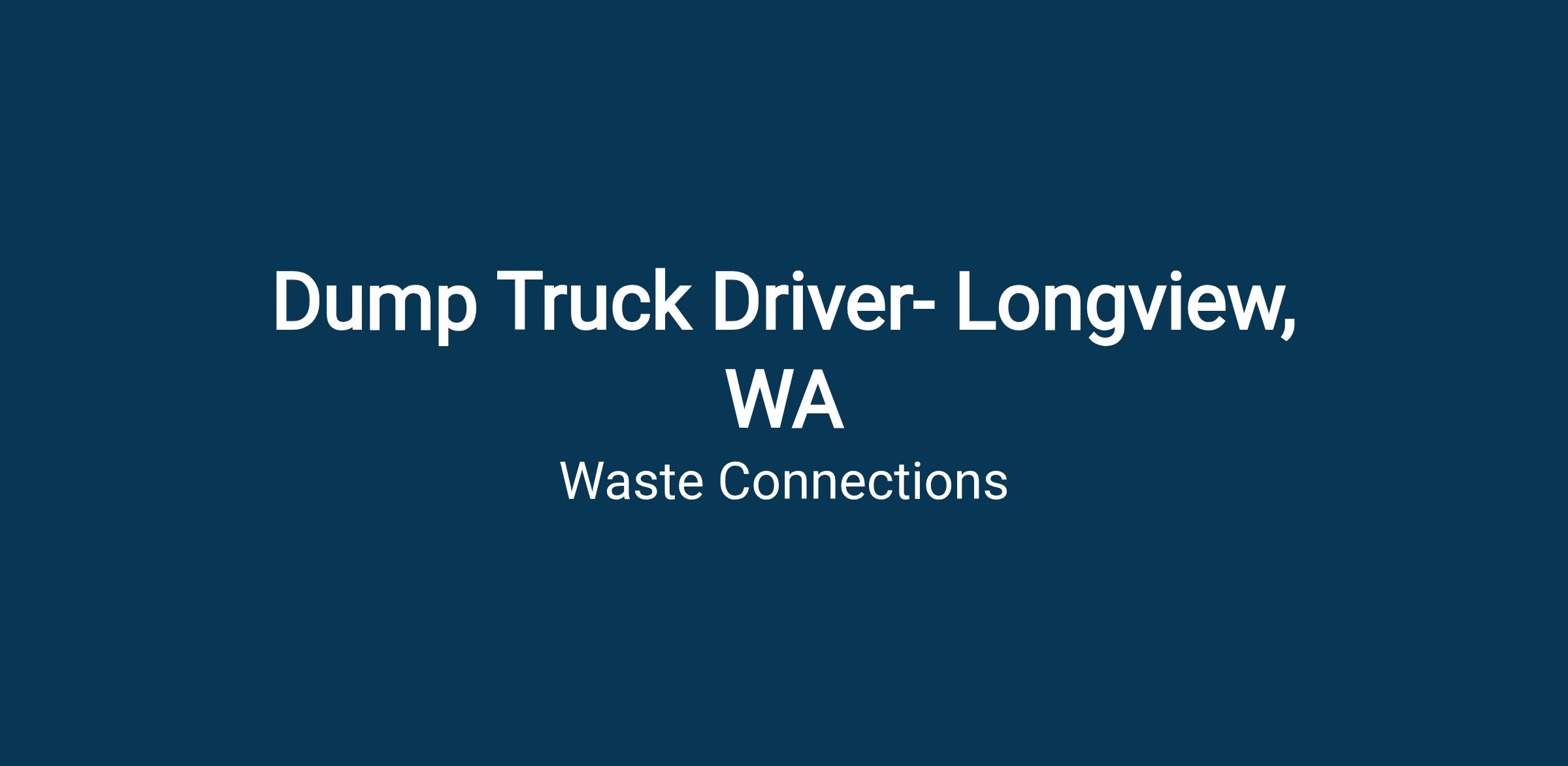 Waste Control, a Waste Connections company, is hiring for a Dump Truck Driver to join the team in Longview, Washington! This position will be hauling debris to Landfill up Headquarters Road.