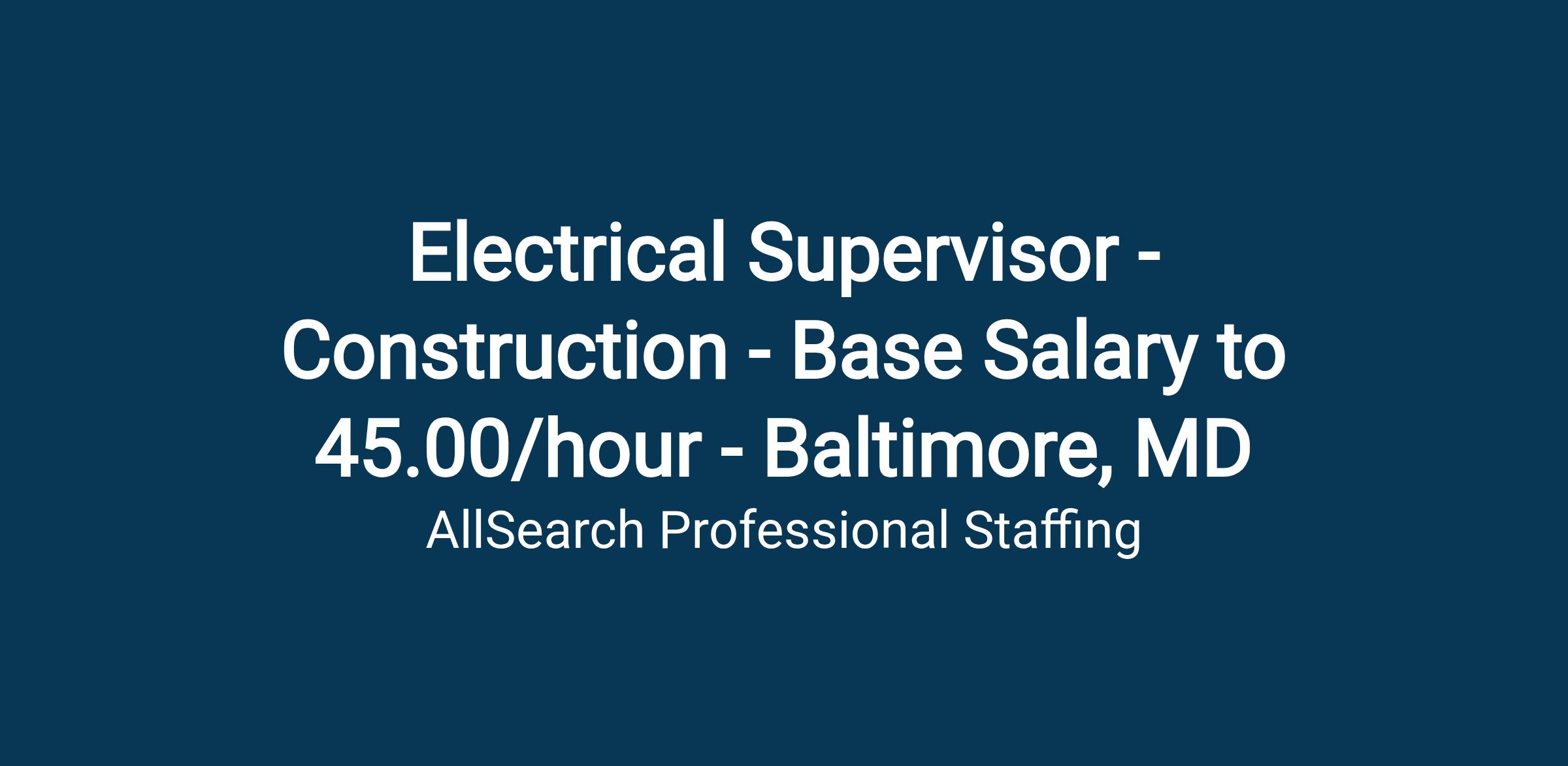 Electrical Supervisor - Construction - Base Salary to 45.00/hour - Baltimore, MD