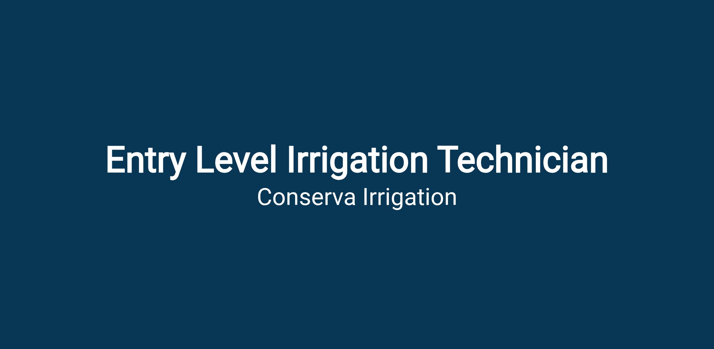 Come join the team that is redefining the irrigation industry. Conserva Irrigation promotes from within - training our Level One Technicians to become Level Two Technicians to become Sales Technicians and beyond as an accredited industry participant.
