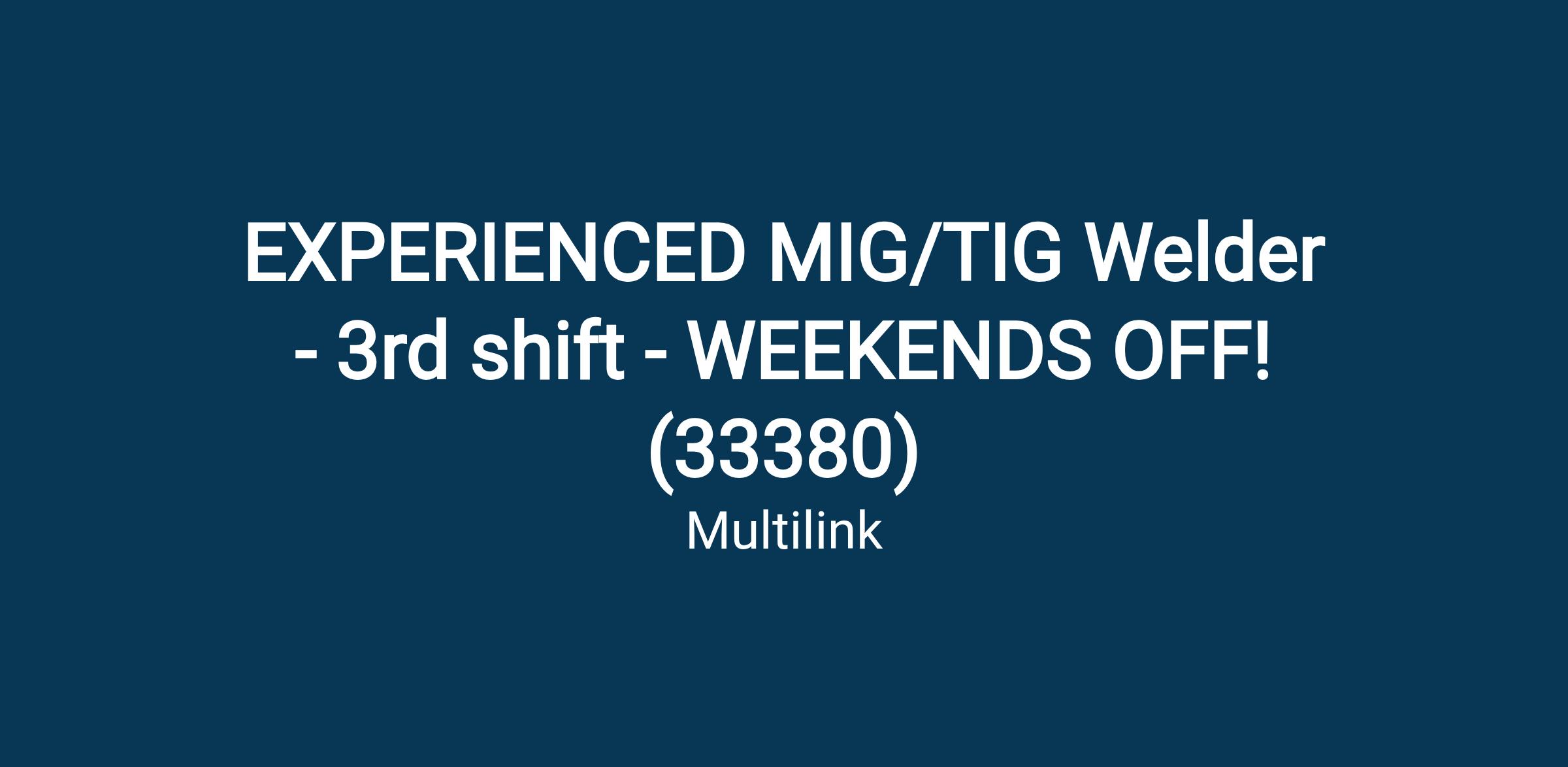 Multilink is growing and adding a 3rd shift to our Welding Production team. We are currently seeking qualified MIG/TIG welders for this new opportunity. Hours for this shift are MONDAY - THURSDAY nights 8pm-6am - Enjoy your weekends from Friday at 6 am until Monday at 8pm!!!