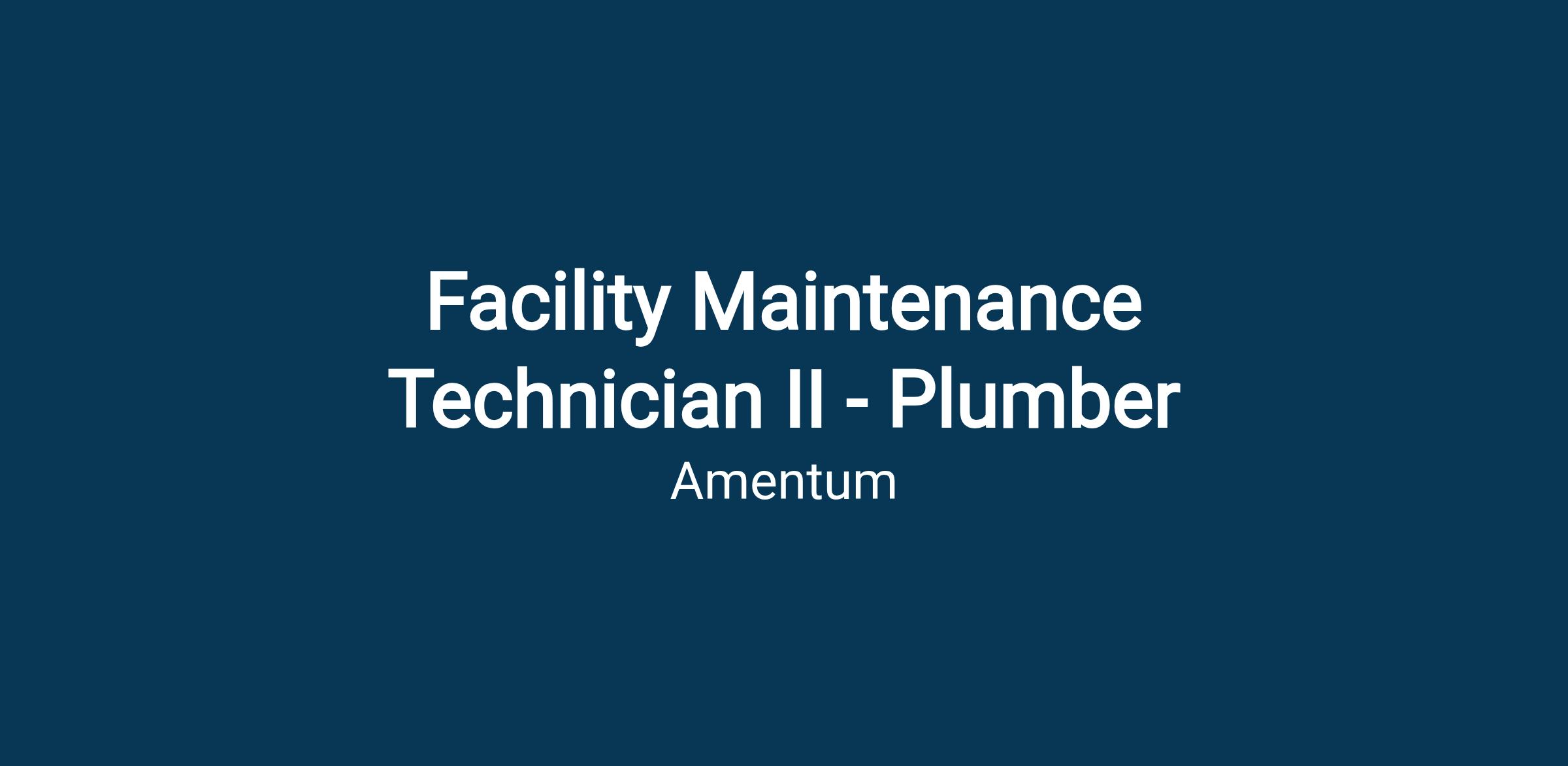 Amentum is seeking a Facility Maintenance Technician II - Plumber to join our operations & maintenance team in Fort Wayne, Indiana.