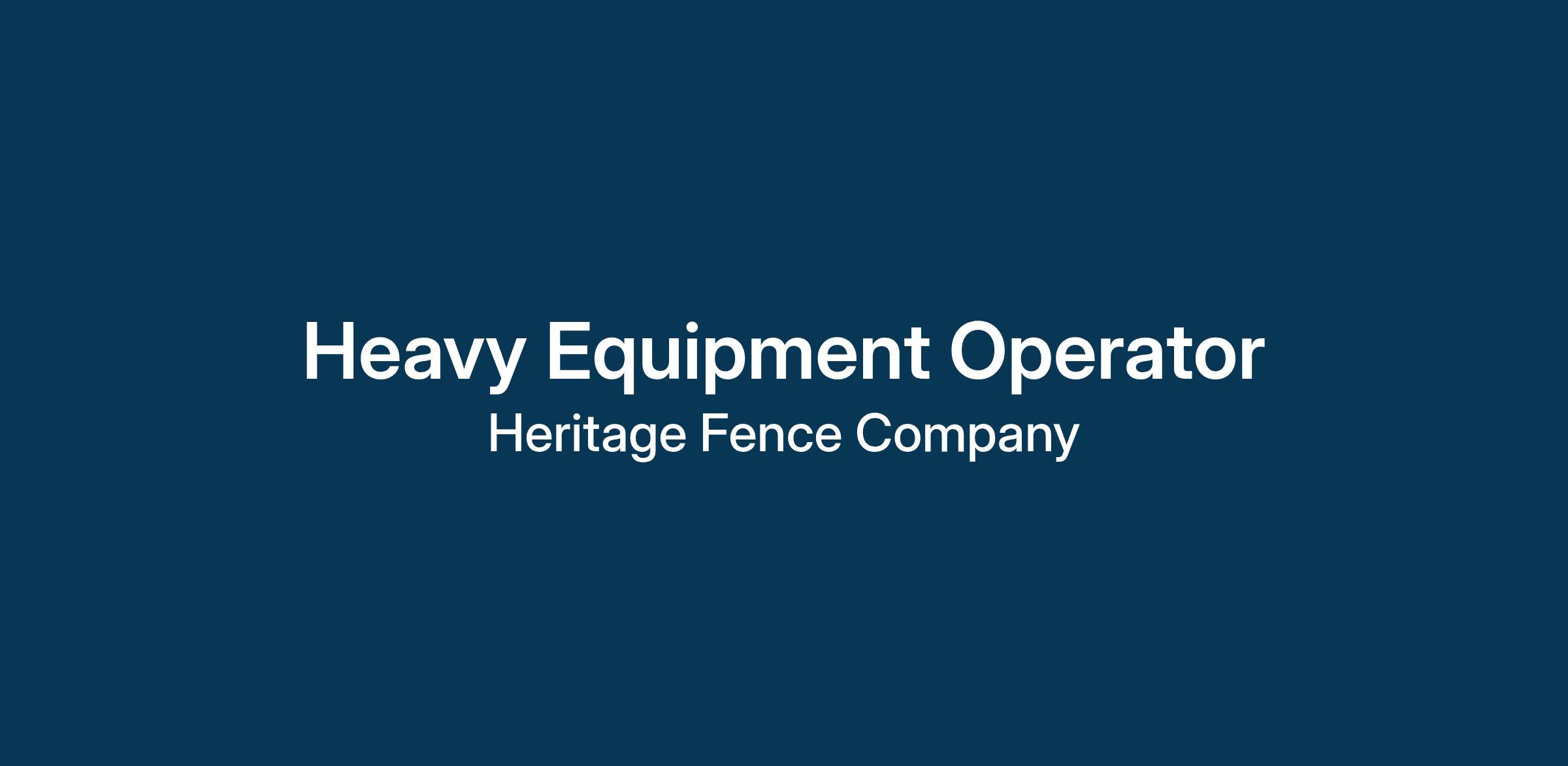 Heritage Fence Company is looking for a Heavy Equipment Operator to join our growing team! This role is a great opportunity for a SAFETY CONSCIOUS individual(s) with a minimum of 5 years of experience. We are celebrating 53 years in the fencing industry! We are focused on customer satisfaction, quality craftsmanship and employee engagement and retention. We pride ourselves on being a “We” Company that takes the safety of our employees very seriously!