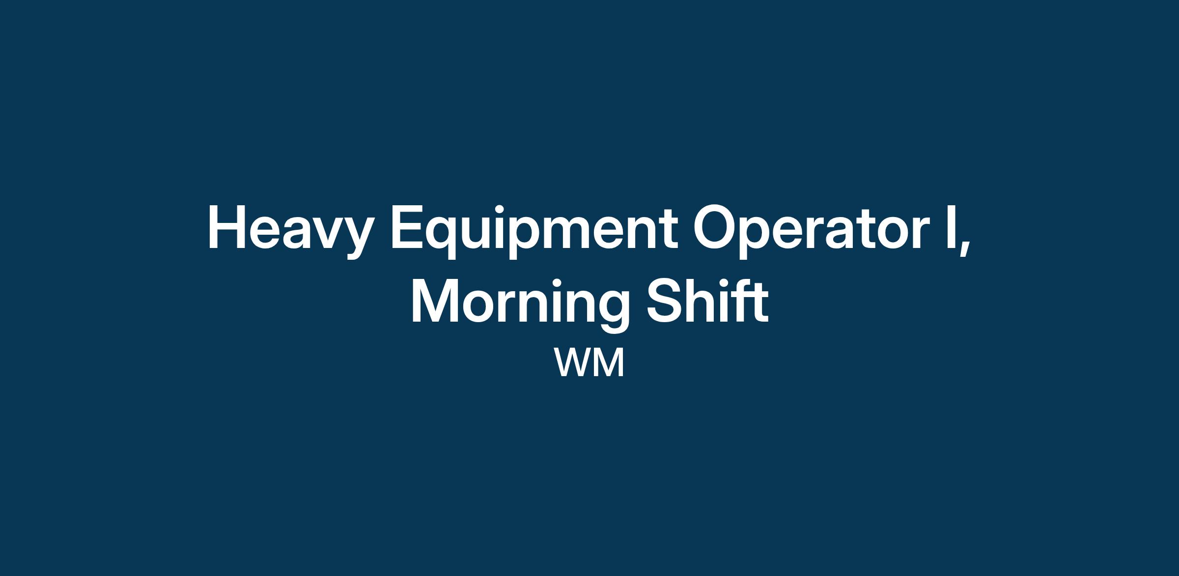 Those are the key details on pay and schedule – now here’s more on what you’ll be doing as a Heavy Equipment Operator I at WM.