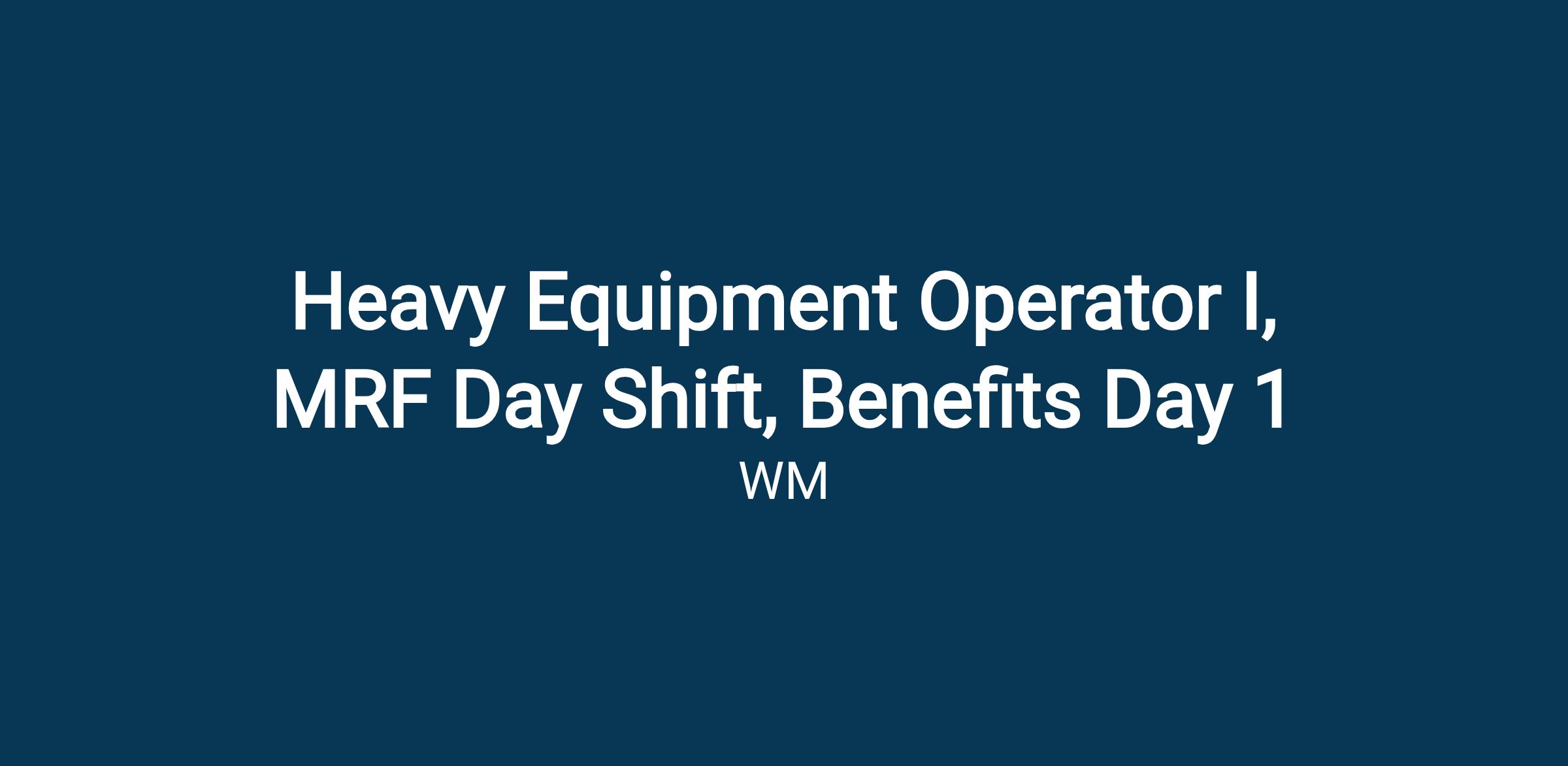 Those are the key details on pay and schedule – now here’s more on what you’ll be doing as a Heavy Equipment Operator I at WM.