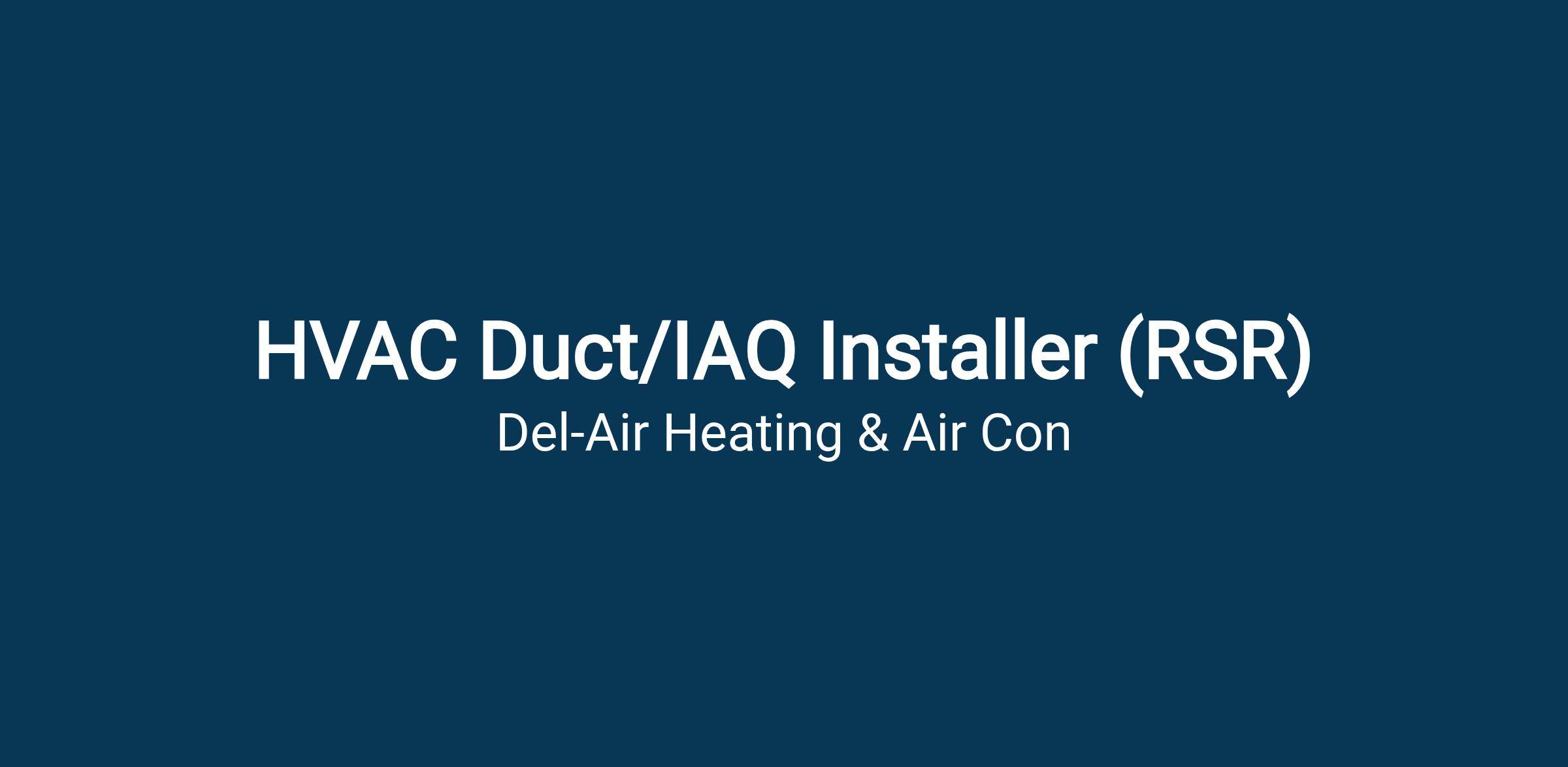 Primary Responsibilities: Prepare and install ductwork for new heating and air conditioning systems in residential homes.
