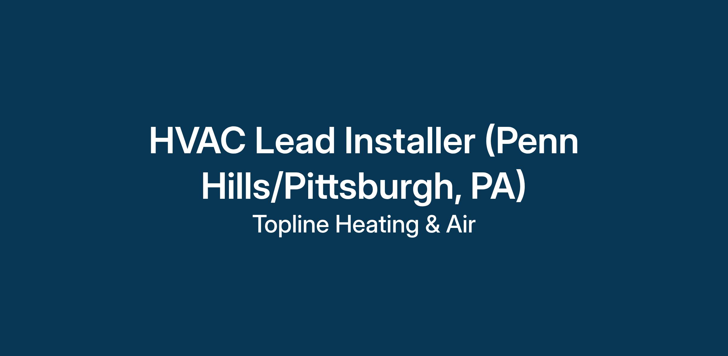 HVAC Lead Installer (Penn Hills/Pittsburgh, PA)