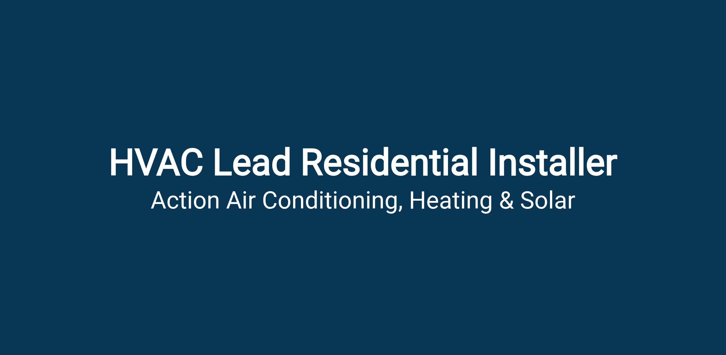 Now hiring for a HVAC Lead Residential Installer at ALL LOCATIONS: Murrieta, San Marcos, San Diego