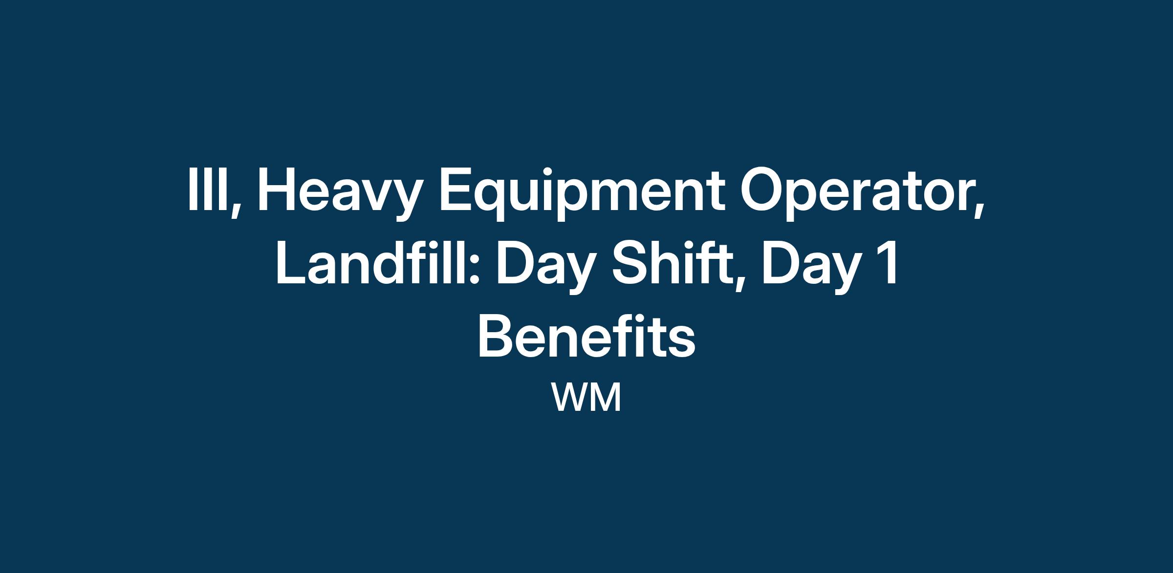 Are you looking for stable work as a Heavy Equipment Operator III with benefits that provide financial security for you and your family? Aspiring to advance in your heavy equipment career at a site that prides itself on employee safety? Searching for a company that prioritizes its employees' well-being and understands the importance of family time? If this speaks to you, then WM might be the place for your next career move.