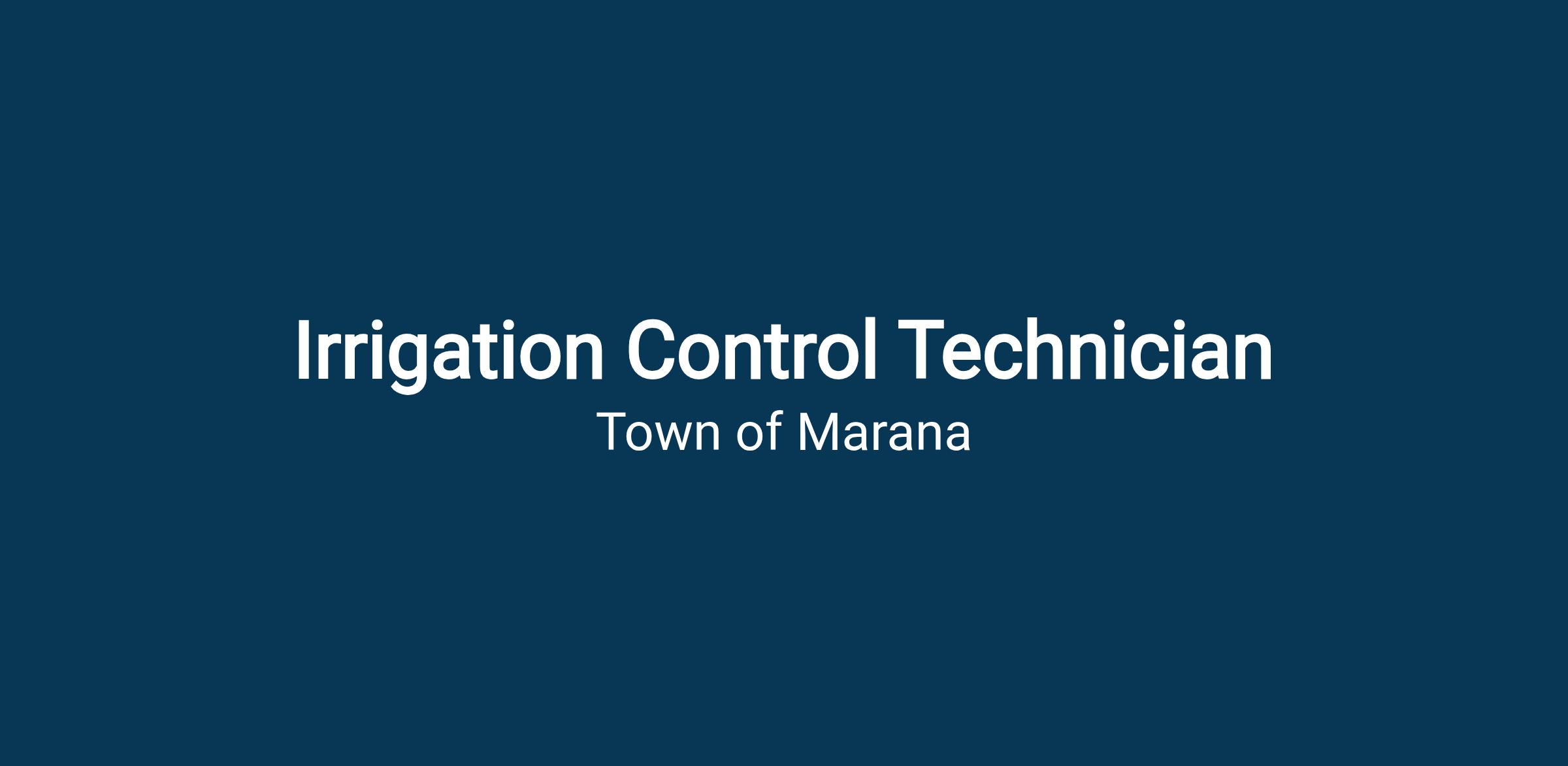 The Town of Marana is seeking an Irrigation Control Technician to work in the Parks and Recreation Department. This is a full-time position and an exciting opportunity for someone interested in having a positive impact on the Town's central irrigation control system.