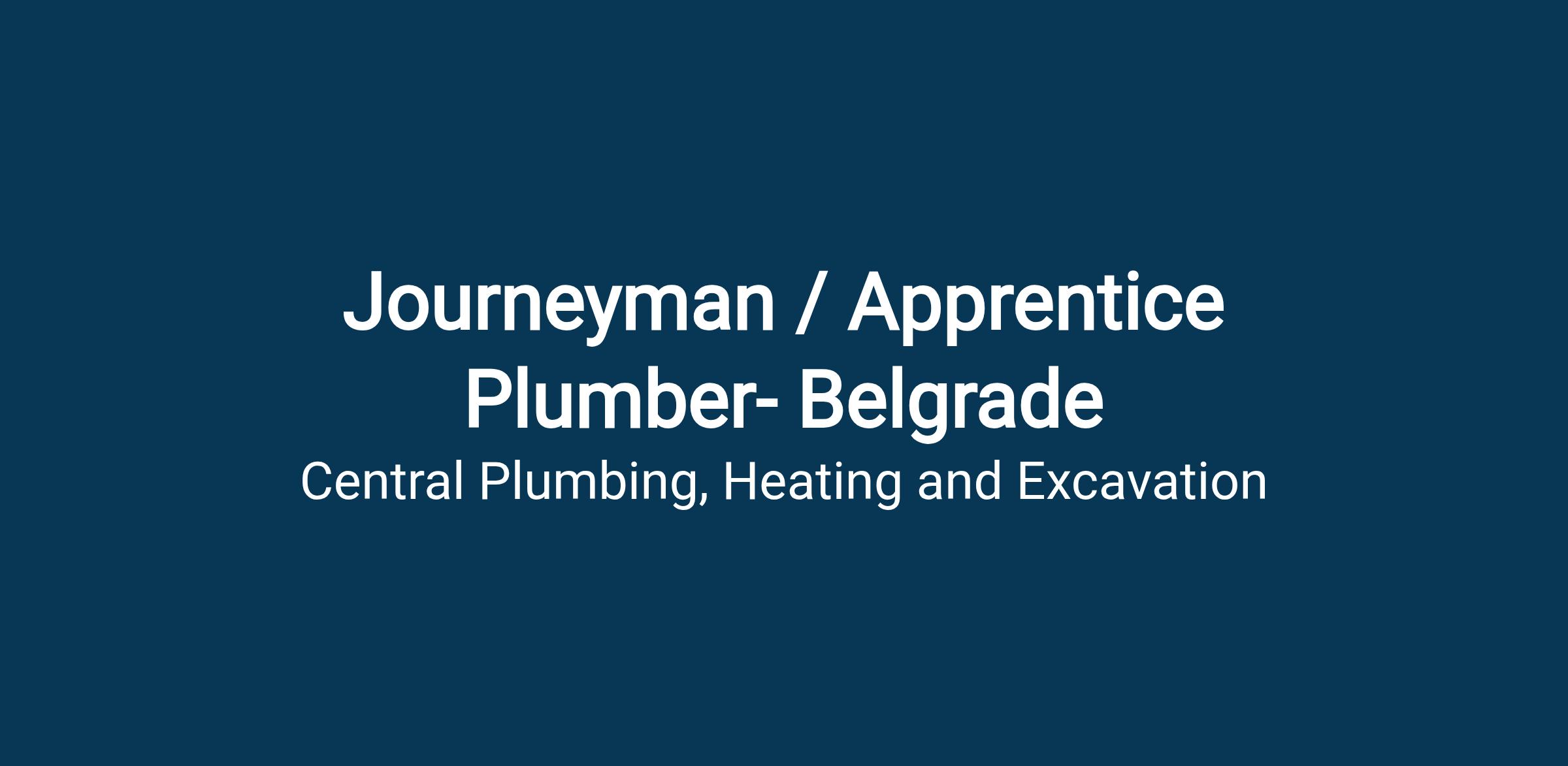 Central Plumbing, Heating, Excavation is an Equal Opportunity Employer; All qualified applicants will receive consideration for employment.