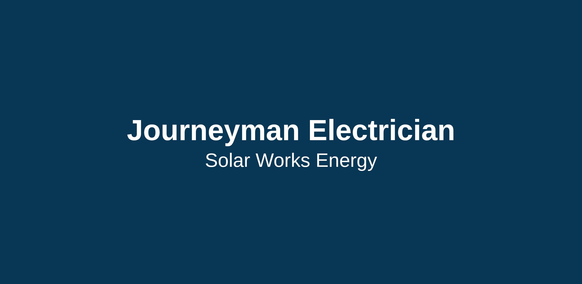 Join <\/span>Solar Works Energy<\/b>, the largest residential solar installer in New Mexico! We are looking for a licensed <\/span>Journeyman Electrician<\/b> <\/span>to help us continue delivering top -tier solar energy solutions to our customers. This is your opportunity to work with a fast -growing company in the solar industry, providing stable employment and opportunities for advancement.