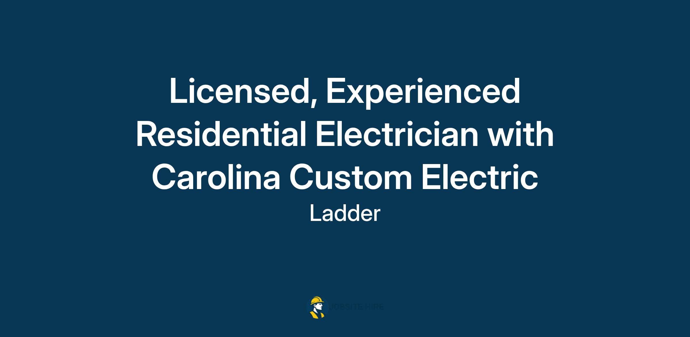 Apply here: https://app.meetladder.com/e/Carolina-Custom-Electric-jvHIqIEaPH/Licensed-Experienced-Residential-Electrician-Mount-Pleasant-SC-KazeH9WeFL