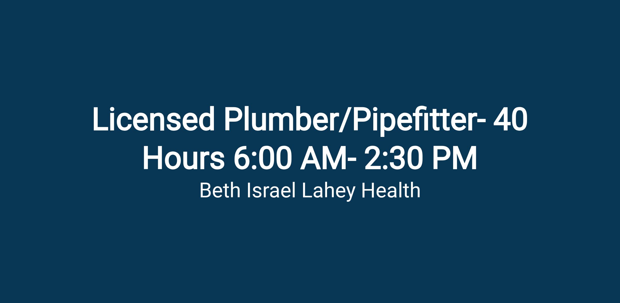 Licensed Plumber/PipefitterJob Description: