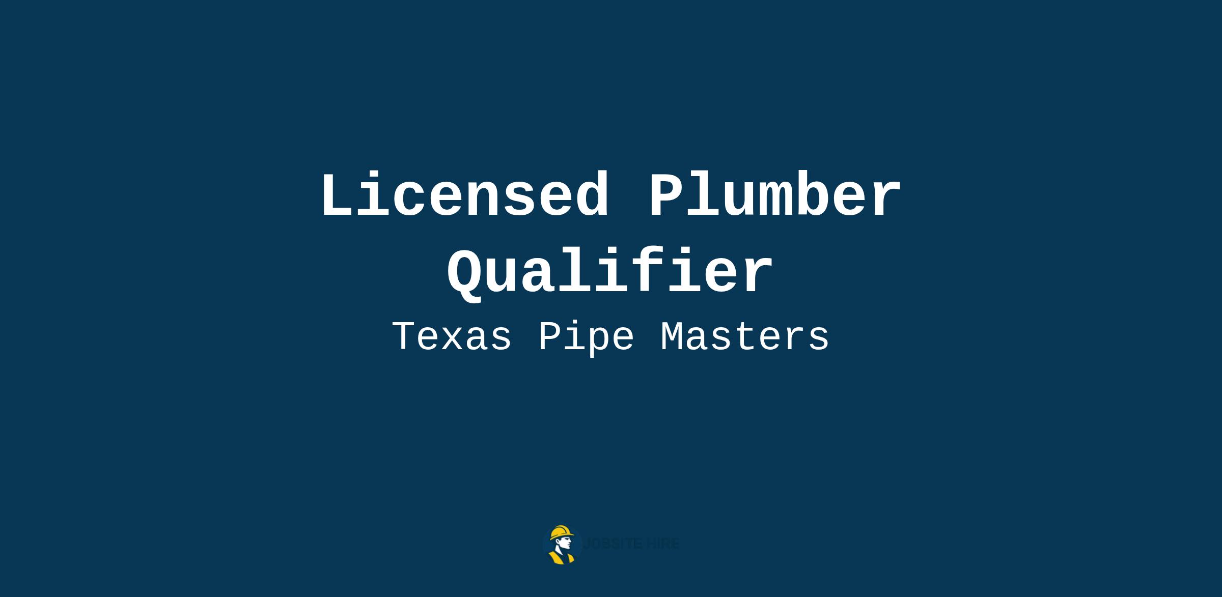 Active Texas plumbing license: Master strongly preferred; Journeyman/Tradesman considered.