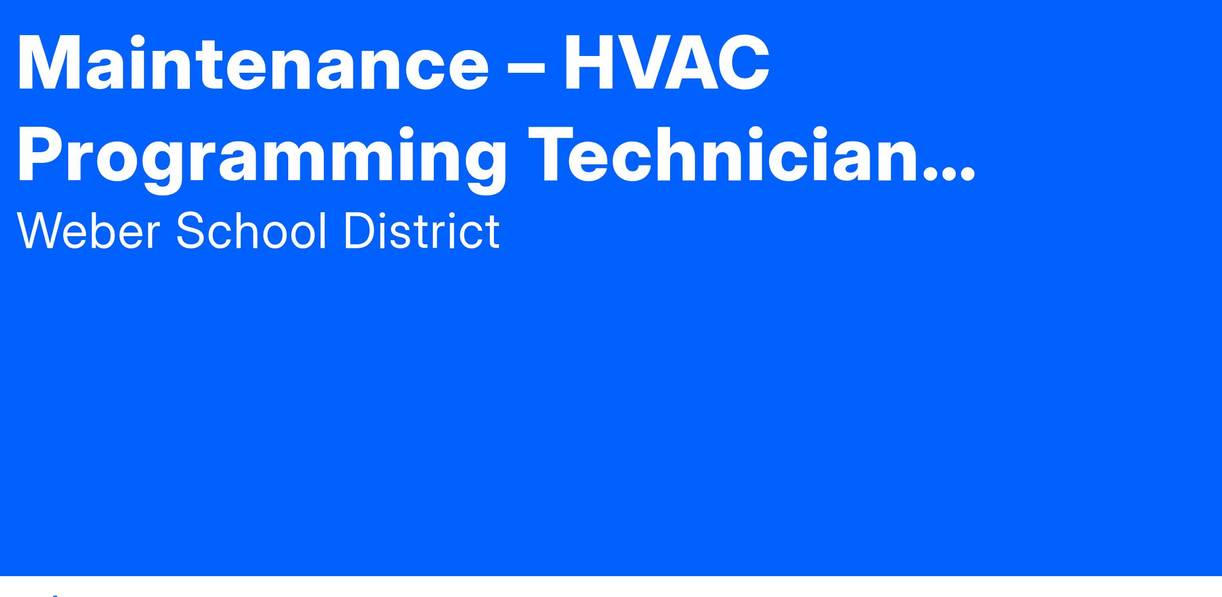 A position has been declared open in the Weber School District in Maintenance for a HVAC Programming Technician. This position is for 8.00 hours per day, 12 months per year.