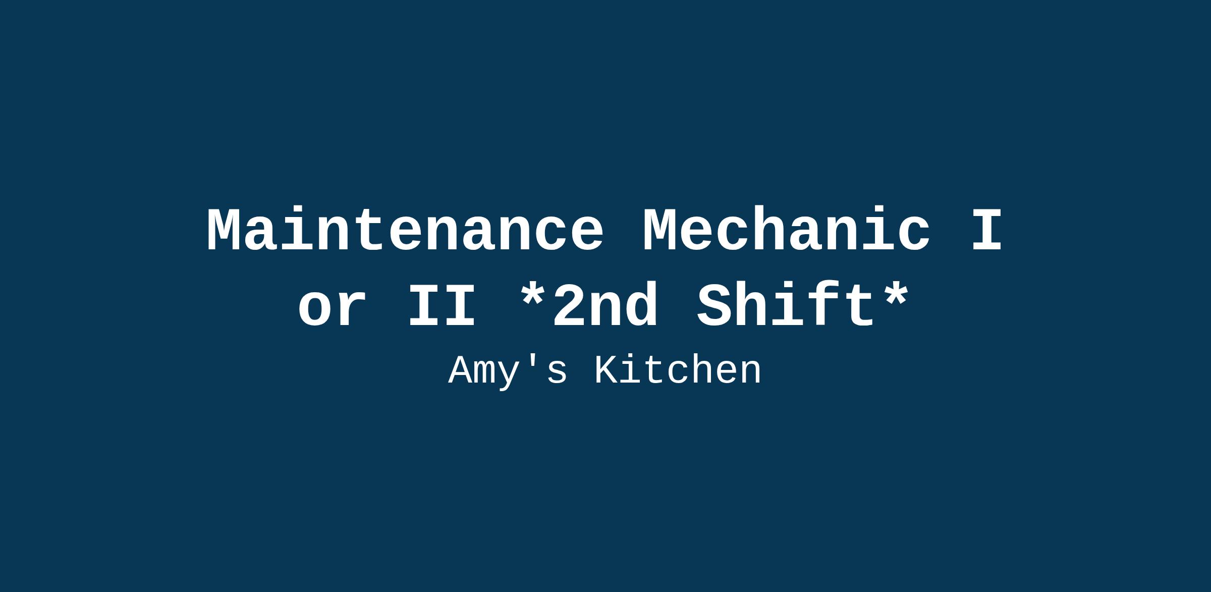 Amy’s takes pride in being an Equal Opportunity and Second-Chance Employer and is equally dedicated to Affirmative Action and providing fair chances in our workplace. We are committed to fostering diversity and inclusion, ensuring that every individual has an equal employment opportunity regardless of race, color, ancestry, religion, sex, national origin, sexual orientation, age, citizenship, marital status, disability, gender identity, or Veteran status.