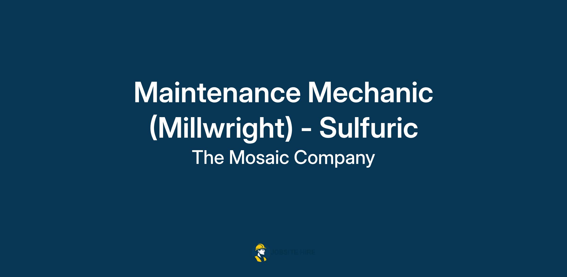 We are currently seeking a Maintenance Mechanic - Millwright for our Louisiana Operations (Uncle Sam) location, Sulfuric Unit. As a Maintenance Mechanic, you will troubleshoot and repair as well as preform preventative maintenance (PM) of plant or mine equipment and machinery in accordance with manufacturer/Mosaic’s standards in a safe and expedient manner. Ability to use hand tools, torches and welding equipment, pneumatic and/or electric tools and precision measuring tools to make repairs or replace equipment which may include but is not limited to pumps, fans, turbines, gearboxes, piping, fabrication, conveyors, large rotating equipment, and/or draglines and dredges. Perform and follow all Personal Protective Equipment (PPE), Pre Job Hazard Analysis (including Workplace Exam), Lock-out Tag-out (LOTO), Hot Work, Hazardous Work, Confined Space, Water Safety, Line Breaking, Safe Work, Daily PM Inspection, Work Order Feedback, General Equipment/Line Isolation Permits or Procedures or Forms or Reports. Actively participate in Pre Job Safety Meetings, Weekly Safety Meetings and other required Annual Training. Actively participate in WorkFlow by giving feedback on work execution roadblocks and successes. Computerized Maintenance Management System (CMMS) inputting of work request as a result of work execution or identified defects.