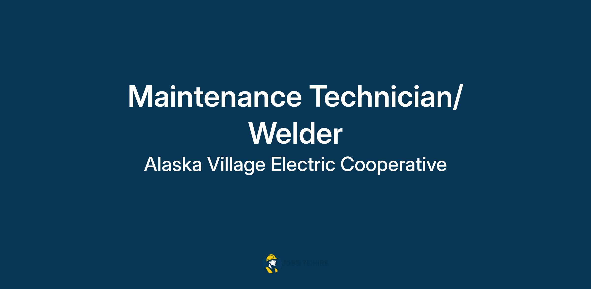 Are you ready to be a vital part of electrifying Alaska's future? At Alaska Village Electric Cooperative, we're on a mission to light up the Last Frontier. We're in search of a Maintenance Technician/Welder who is ready to embark on a remarkable journey, is dependable, knowledgeable, self-motivated, resourceful, likes to travel, and is adventurous enough to take on rural Alaska.