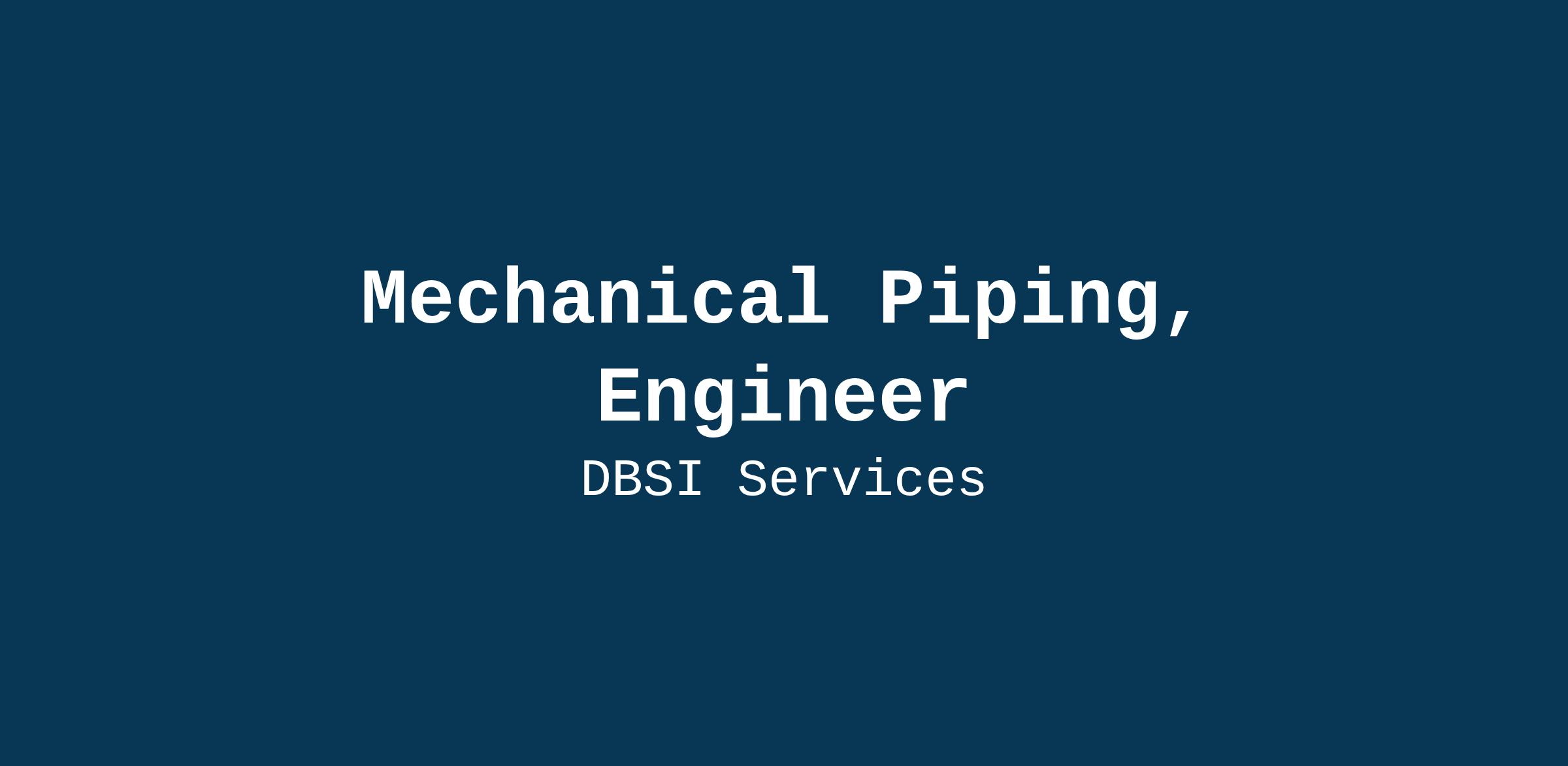 Job Title: Mechanical Piping, Engineer
