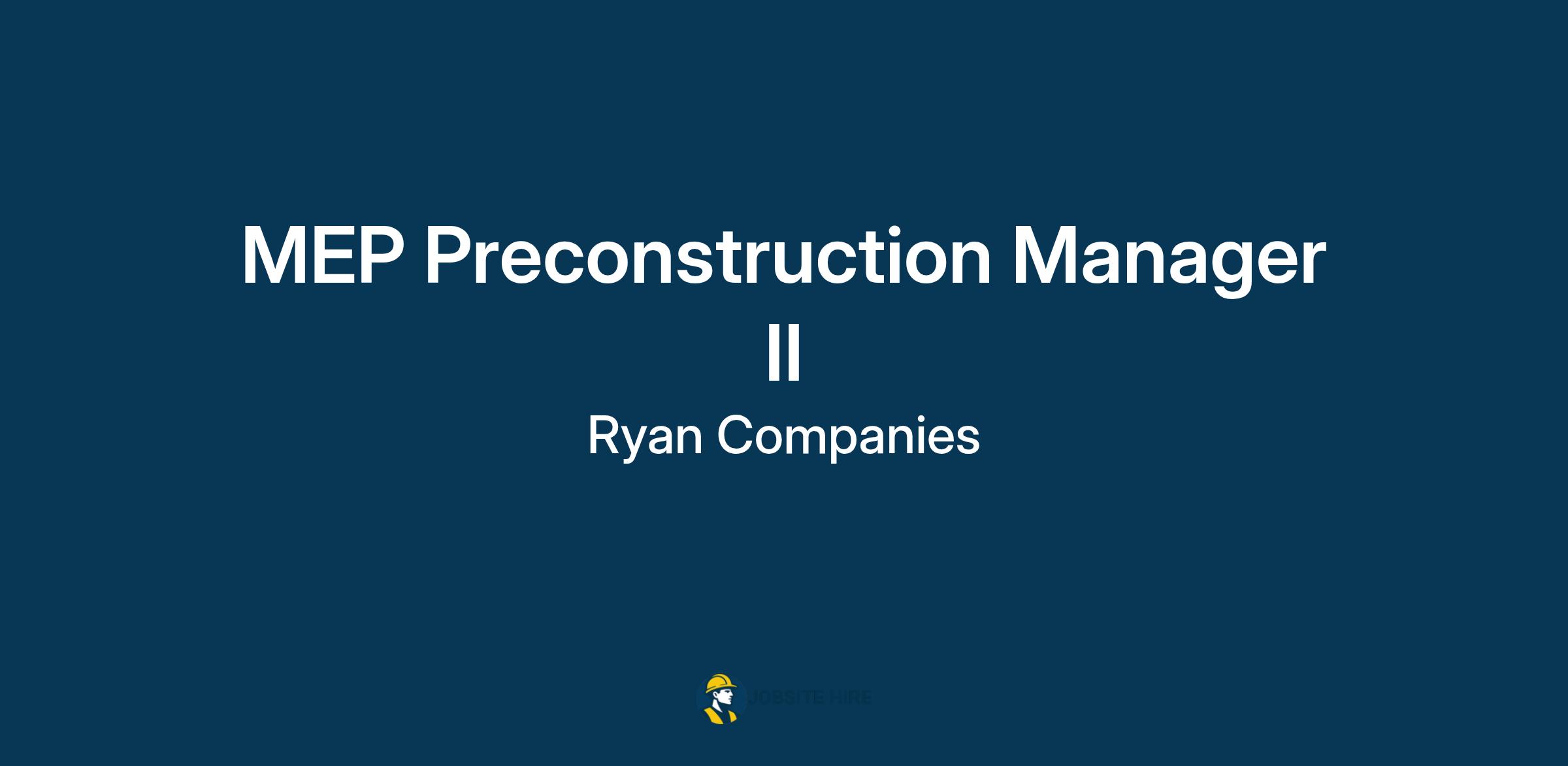 Ryan Companies US, Inc. has an immediate career opportunity for an MEP Preconstruction Manager II to join our National Mission Critical team!