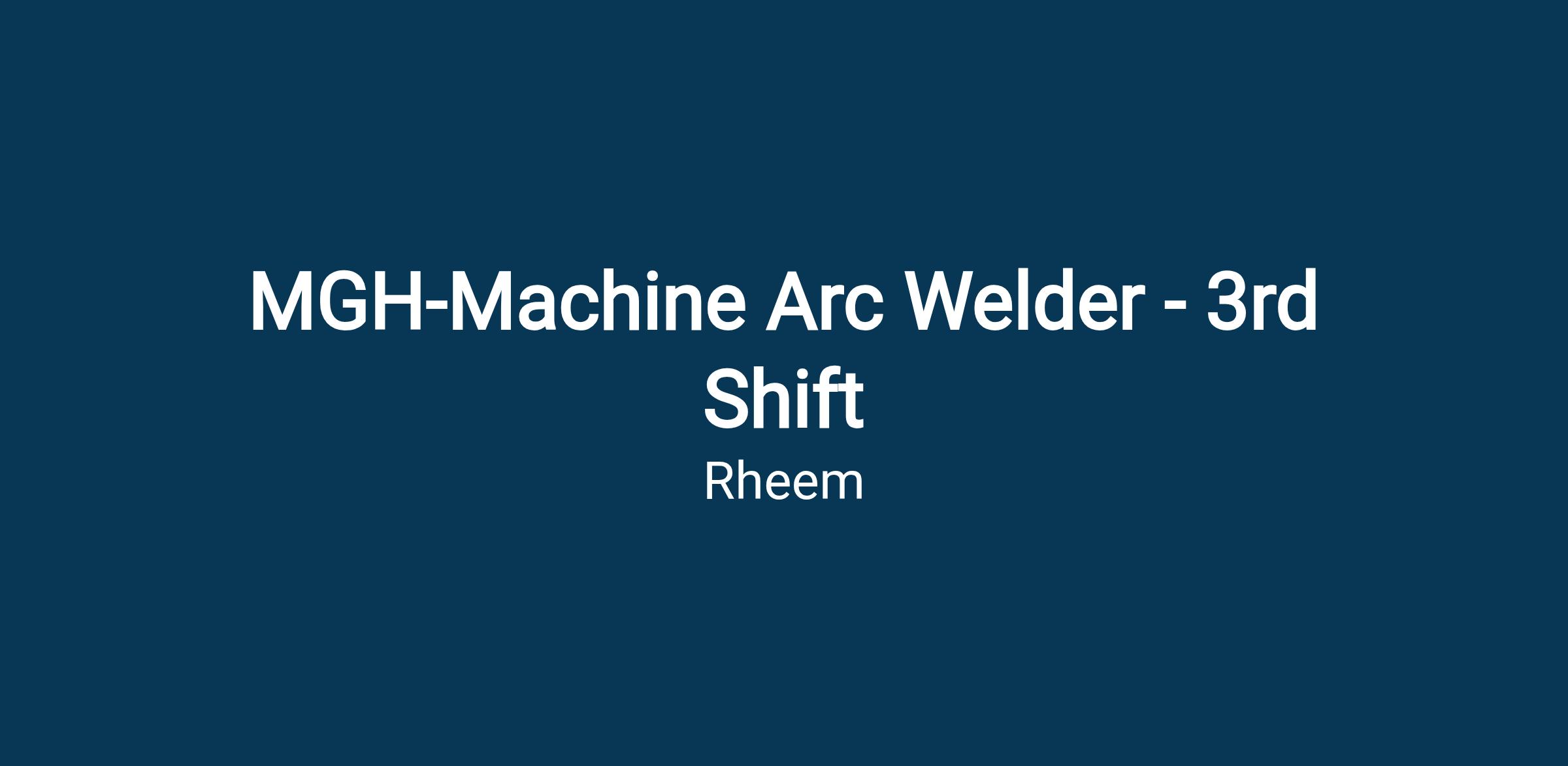 MGH-Machine Arc Welder - 3rd Shift