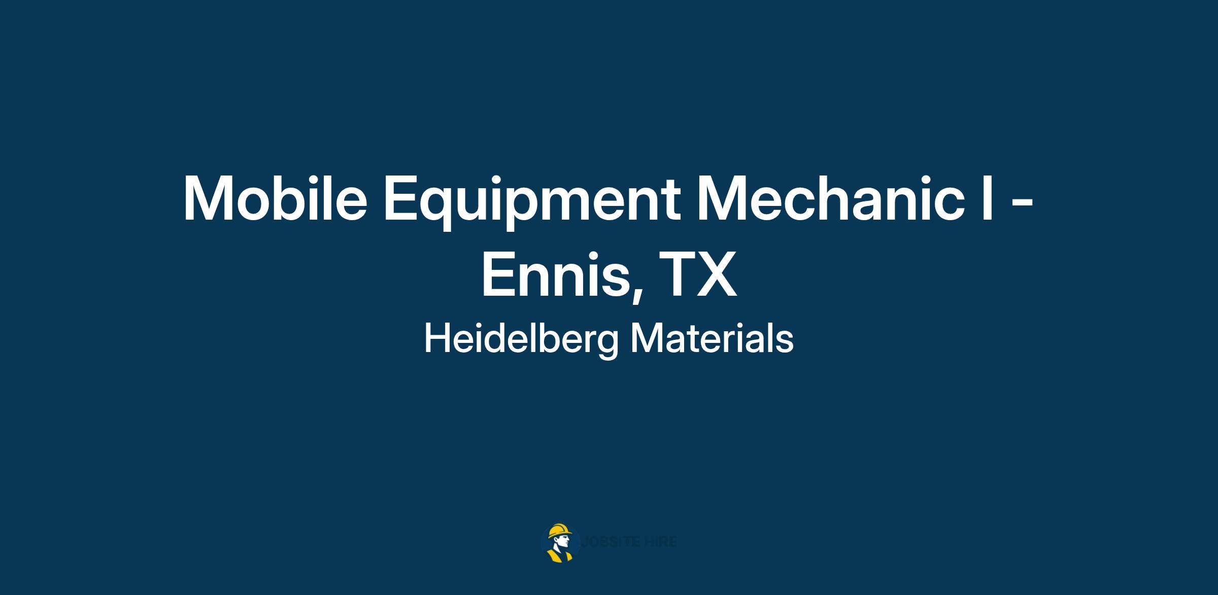 Heidelberg Materials is seeking a Mobile Equipment Mechanic in Ennis, TX.