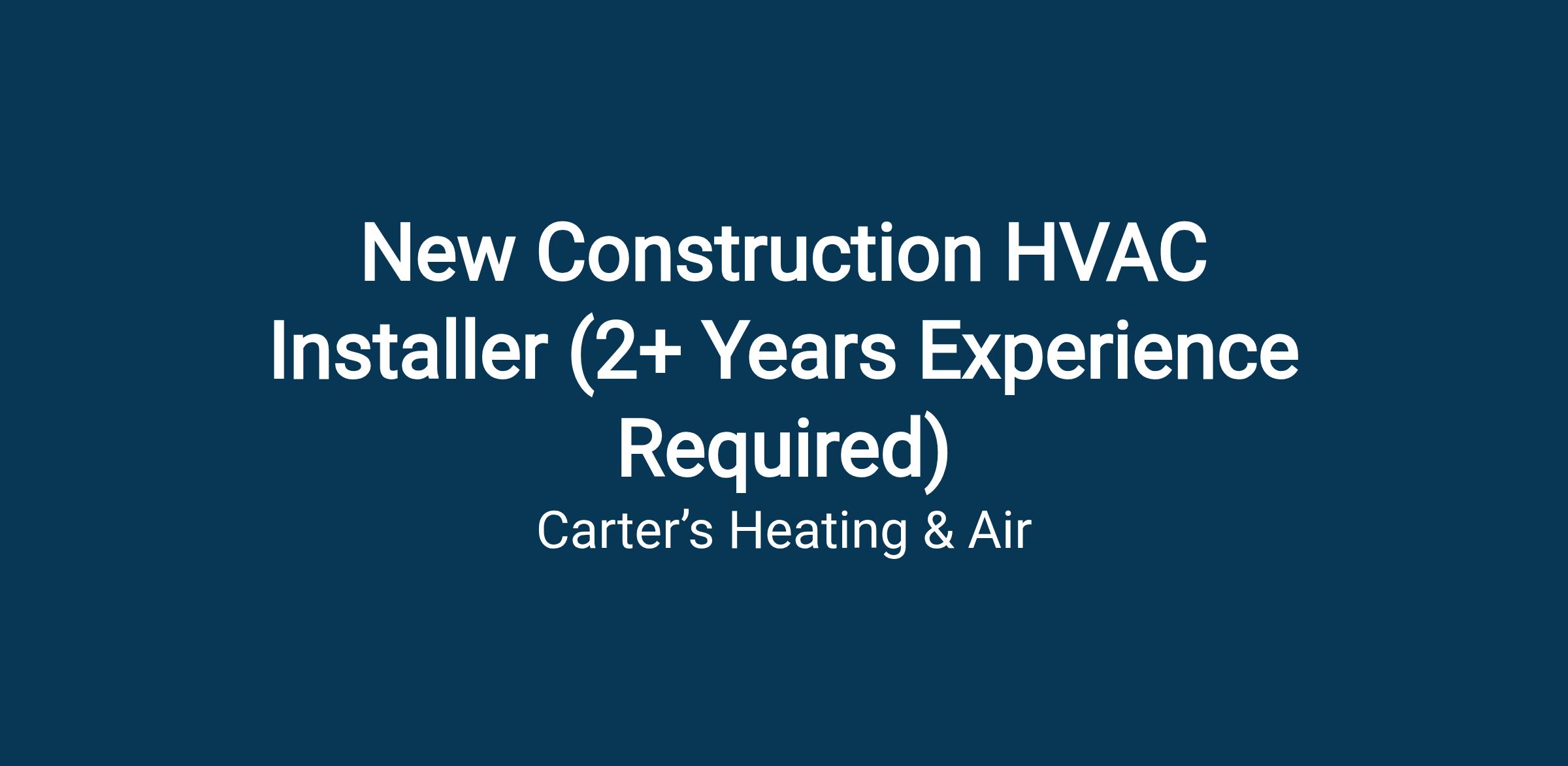 Are you a skilled HVAC installer looking to take your career to the next level? Carter’s Heating & Air in Omaha NE is seeking a motivated and experienced New Construction HVAC Installer to join our team. If you have a passion for delivering high-quality service and are looking for a company that values its employees, then we want to hear from you!