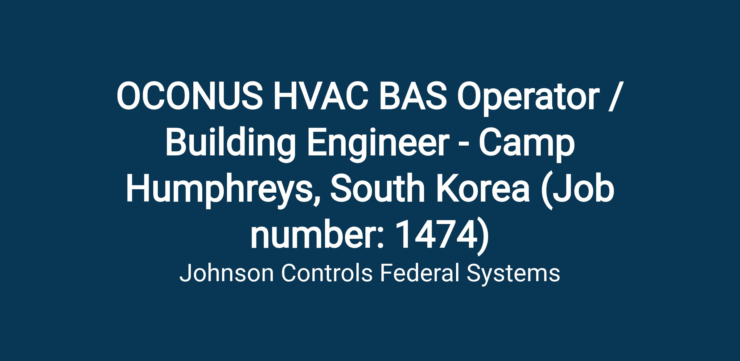We are seeking a Building Control Systems Operator (BMS Operator) to join our federal team based at USAG Camp Humphrey’s in Pyeongtek, South Korea location. This position will monitor and operate the building control system in a high security command center on Camp Humphrey’s. This position requires a Department of Defense clearance so the successful candidate must be able to obtain and maintain a TS/SCI clearance within one year of employment. This is an exciting opportunity to work in a very challenging yet rewarding military facility making a true contribution to our nation’s defenses. The successful candidate will be expected to live in South Korea and will be provided with a housing and subsistence allowance.