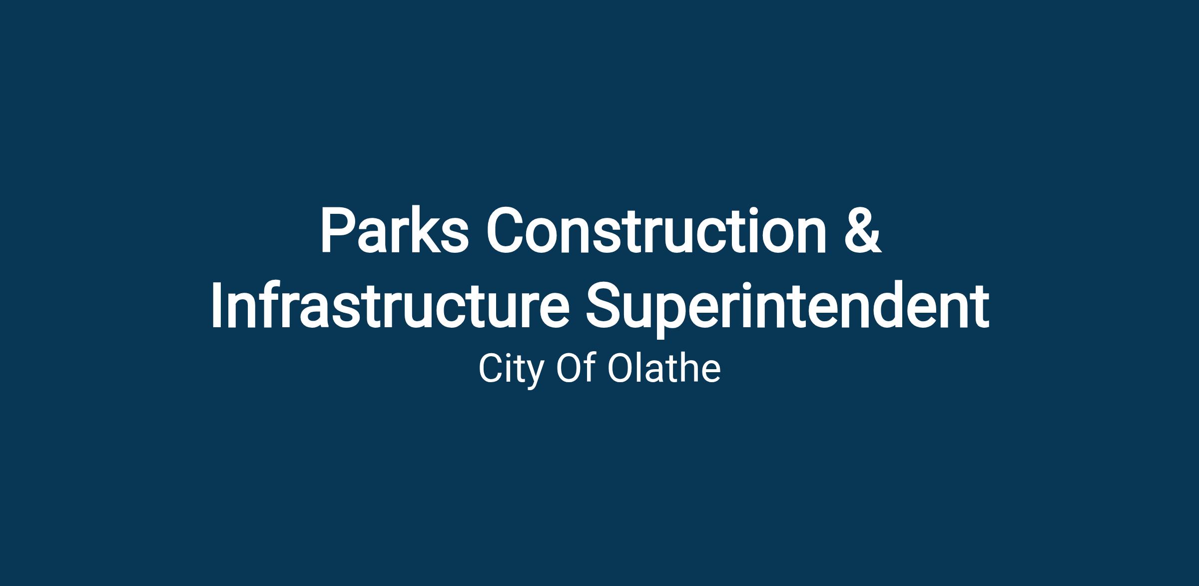 The Parks Construction/Infrastructure Superintendent plans, directs, manages, supervises and oversees the activities and operations of the Parks Construction/Parks Maintenance Section within the City of Olathe Infrastructure Focus Area.