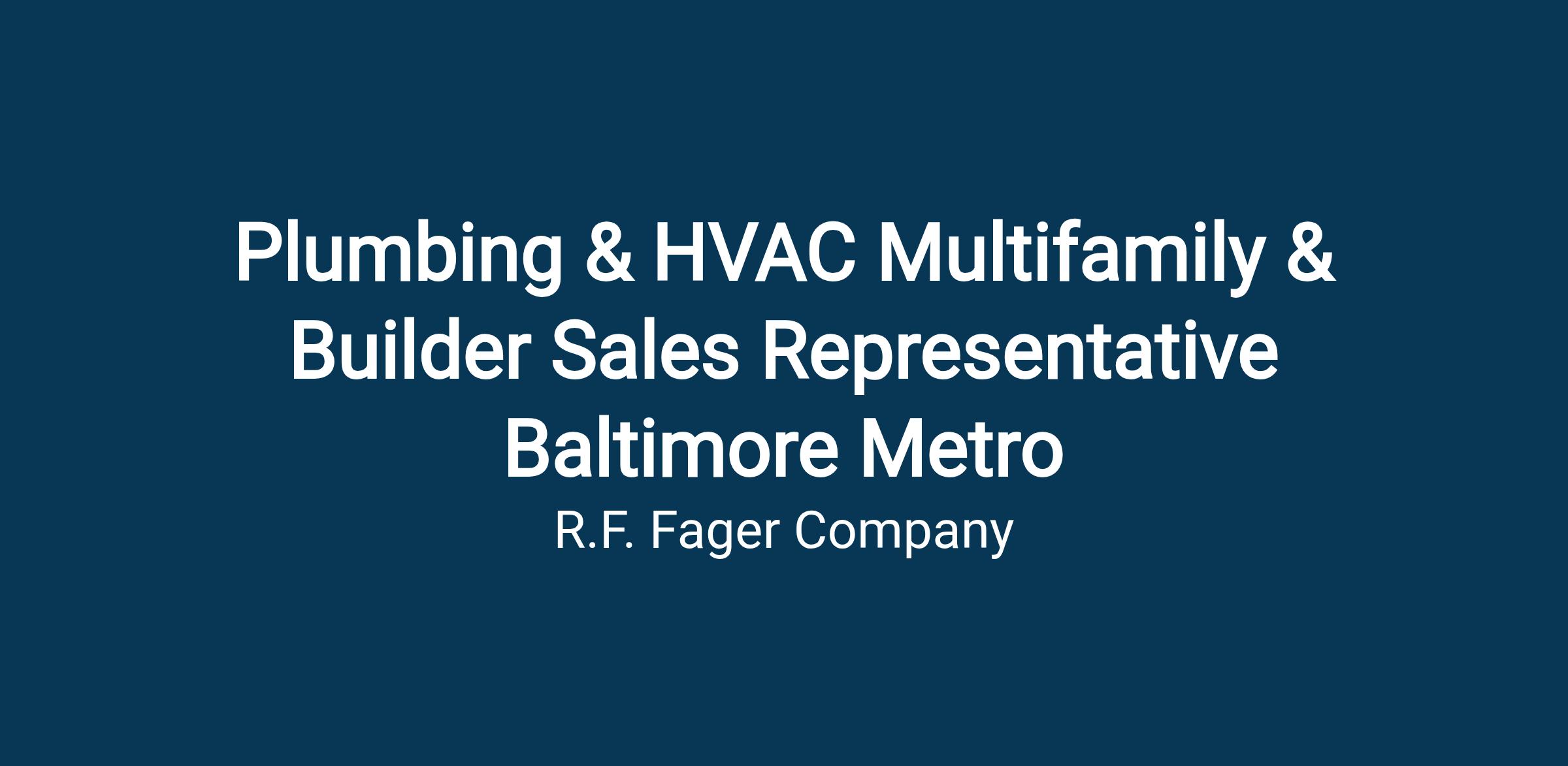R.F. Fager Supply, a trusted and long-time distributor of plumbing, HVAC and kitchen and bath products is growing and expanding to the Baltimore Metro area. Develop and build a customer base of companies which build and service the multifamily and new home construction markets. These customers consist of but are not limited to multifamily new build, multifamily renovations and new home builders (single family, town home, duplex, condos).