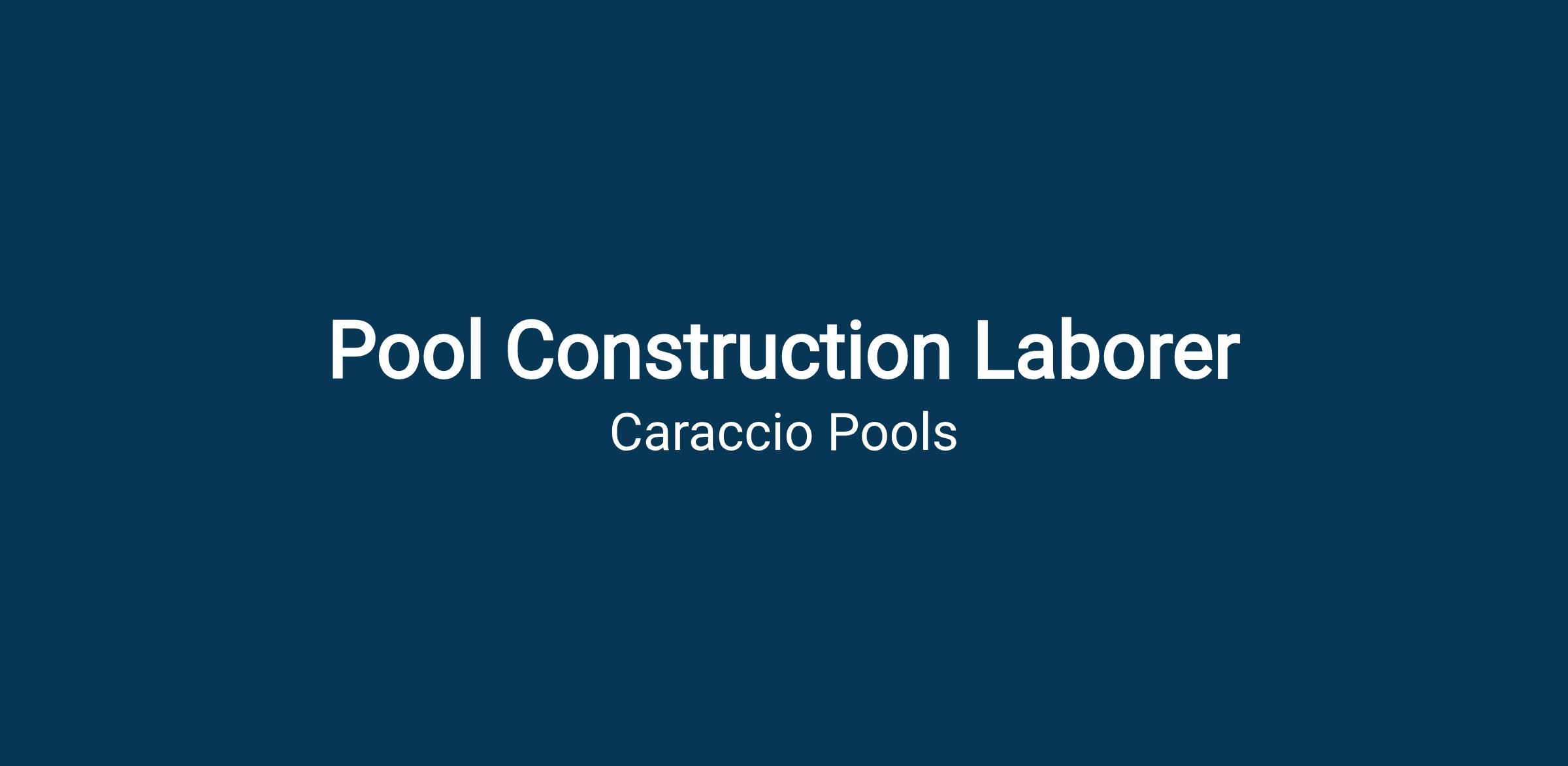 We are hiring a Pool Construction Laborer to join our team. This is a great opportunity for someone who is reliable, hardworking, and ready to start immediately.