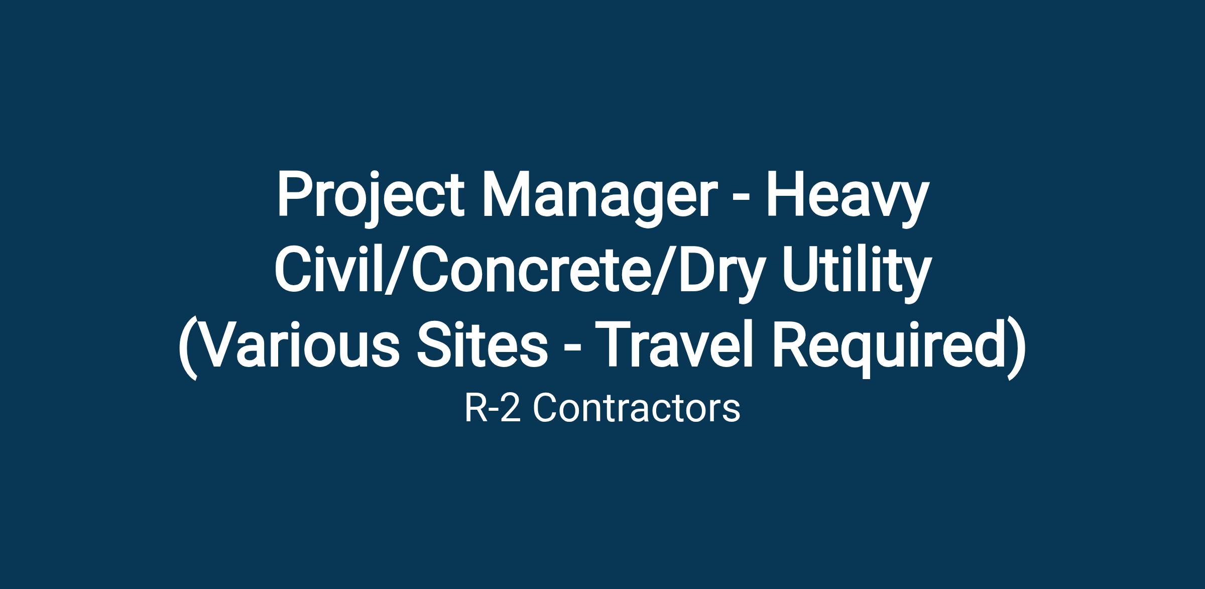 R-2 Contractors is currently seeking a motivated Project Manager - Heavy Civil to join our expanding team. This is an exciting opportunity to contribute to our continued success with a company that values integrity and professionalism.