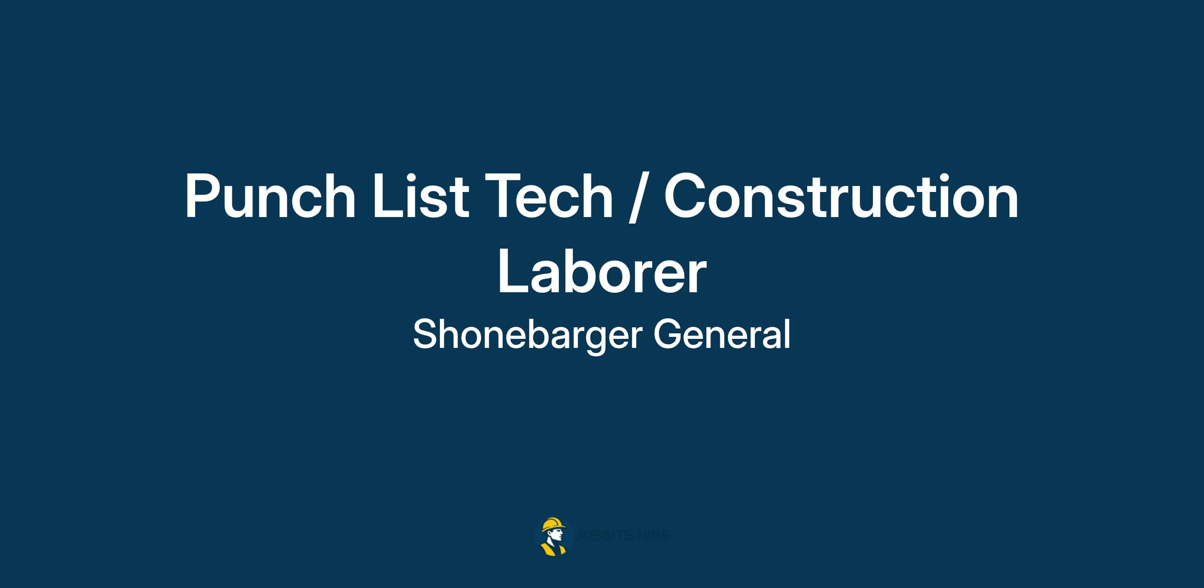 Shonebarger General LLC, a family-owned residential construction company, is looking for a motivated Punch List Tech / Construction Laborer to join our crew. If you enjoy working with your hands, thrive in a fast-paced environment, and want to grow in the construction trade, this is a great opportunity.