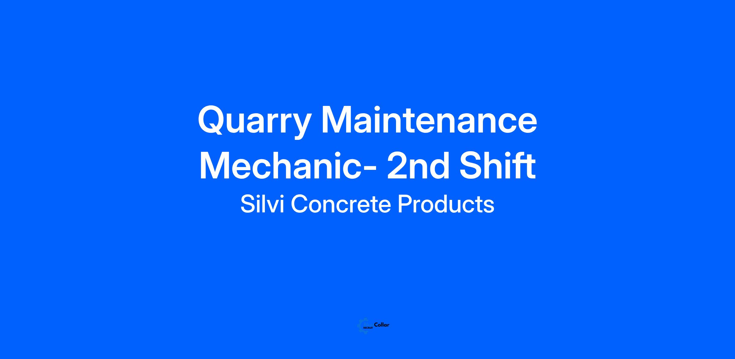 - At least 3 year’s of experience as a Maintenance Mechanic at a similar position or a position with transferable skills to quarry equipment.