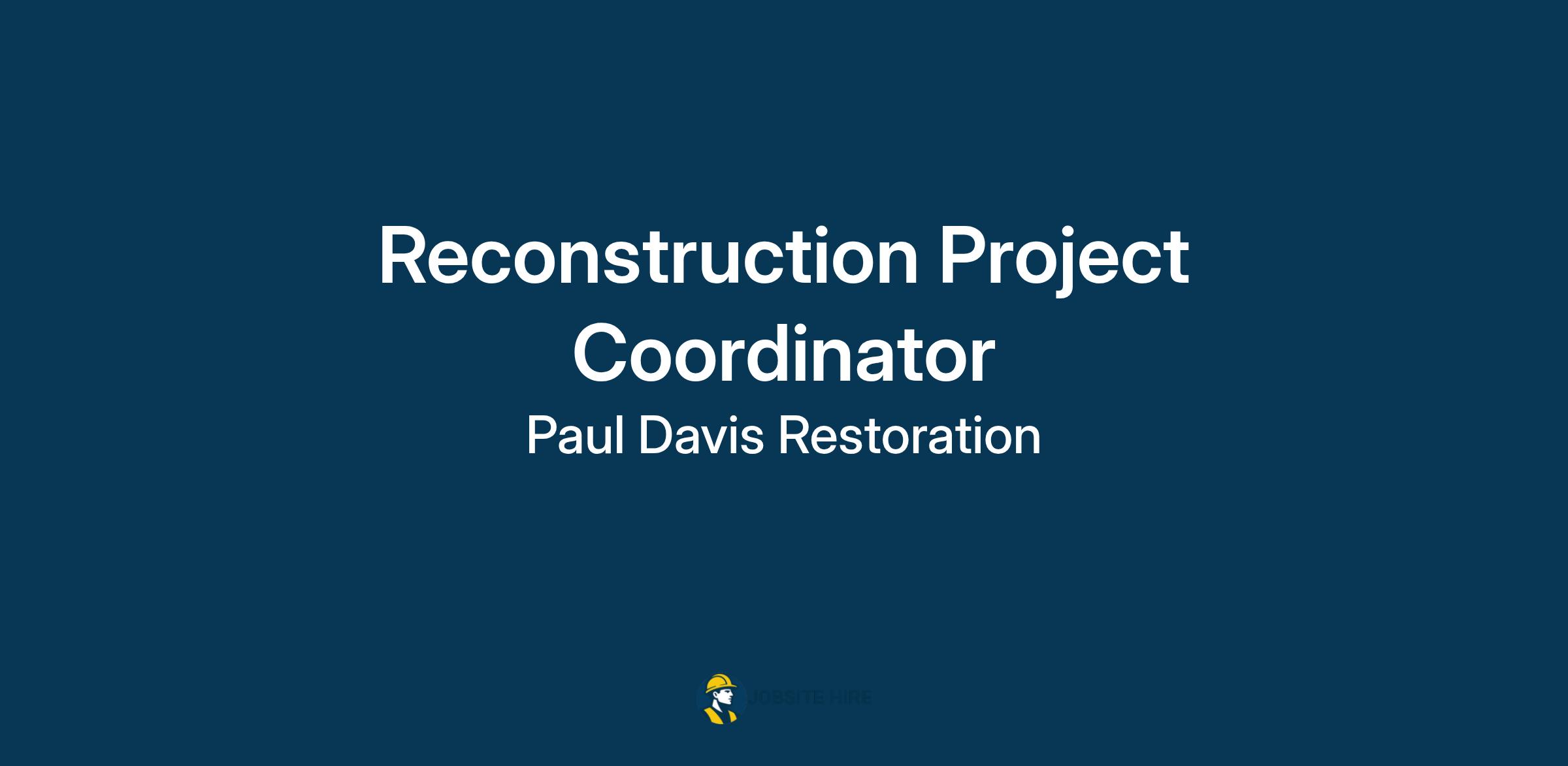 Paul Davis Restoration of the Delmarva Peninsula is currently looking to hire for the position of Reconstruction Project Coordinator.