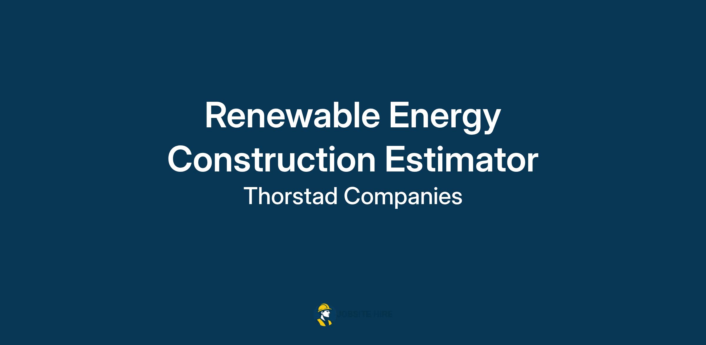 Thorstad Companies is seeking a Renewables Estimator. This position will be responsible for providing leadership and managing the operational and financial aspects of construction projects to be completed on schedule, within budget and in compliance with Company safety and quality procedures and policies. The Renewables Project Manager/Estimator is also responsible for fostering relationships with new and potential clients, identifying potential leads and developing project proposals and estimates. As a member of the leadership team, this position also acts as a cultural manager by ensuring that the company's fundamental values and beliefs are followed and maintained.