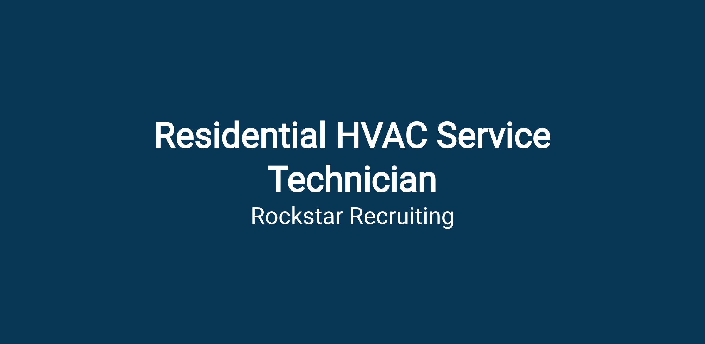 Residential HVAC Service Techs will work out of a service vehicle they are able to take home to diagnose, troubleshoot, service, repair, and maintain residential and light commercial HVAC equipment and systems such as A/C, furnaces, packaged units, humidifiers/dehumidifiers, ductless mini splits, small boilers, etc.